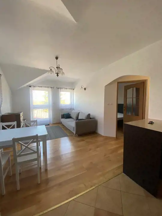 Do wynajęcia mieszkanie na terenie miasta Limanowa położone na 2 piętrze w budynku wielofunkcyjnym o łącznej powierzchni użytkowej 41,13 m2 składające się z salonu z aneksem kuchennym i wyjściem na balkon, jednym oddzielnym pokojem, łazienki z wc oraz przedpokoju. Mieszkanie w pełni umeblowane i wyposażone.