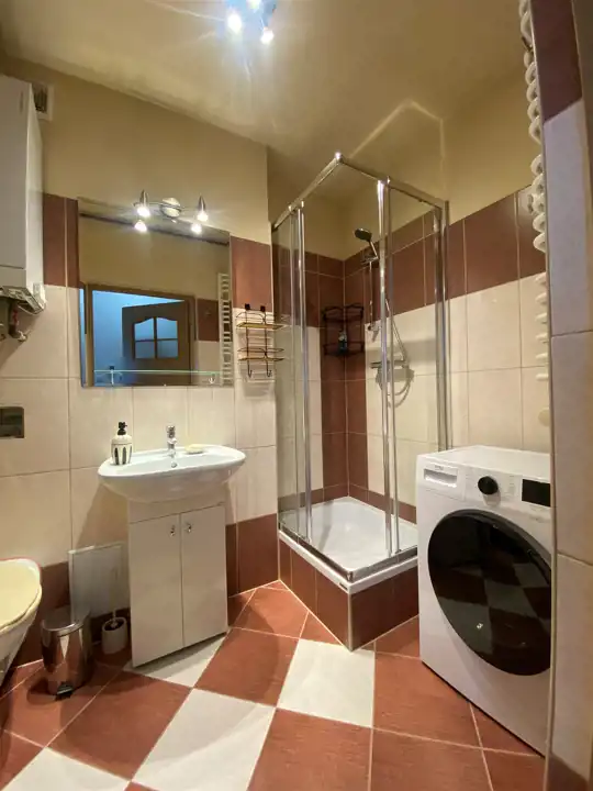 Łazienka z wc, kabiną prysznicową, pralką o pow. 3,89 m2