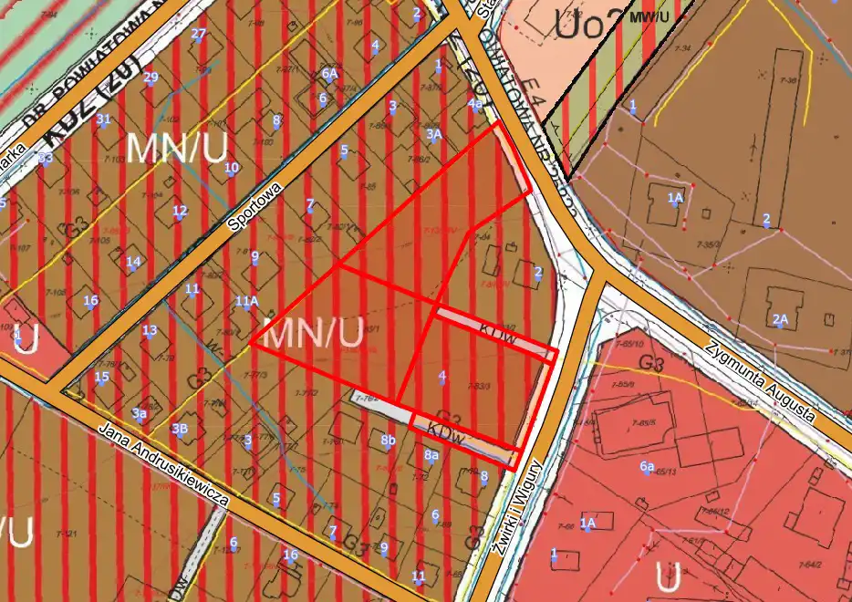 Teren zabudowy mieszkaniowej jednorodzinnej z usługami oznaczony symbolem MN/U.