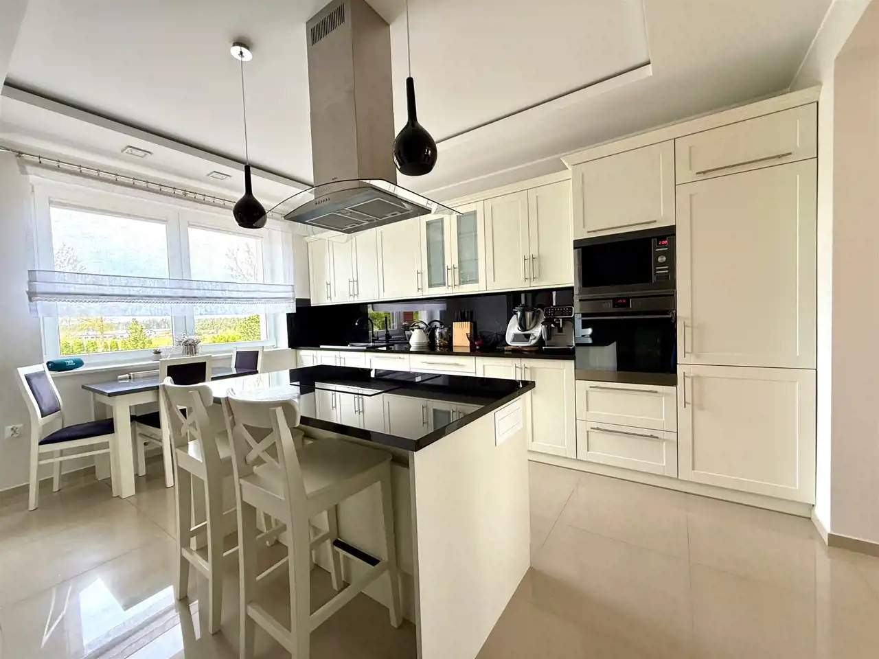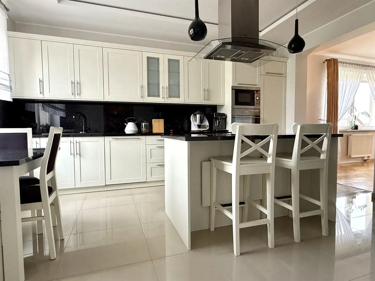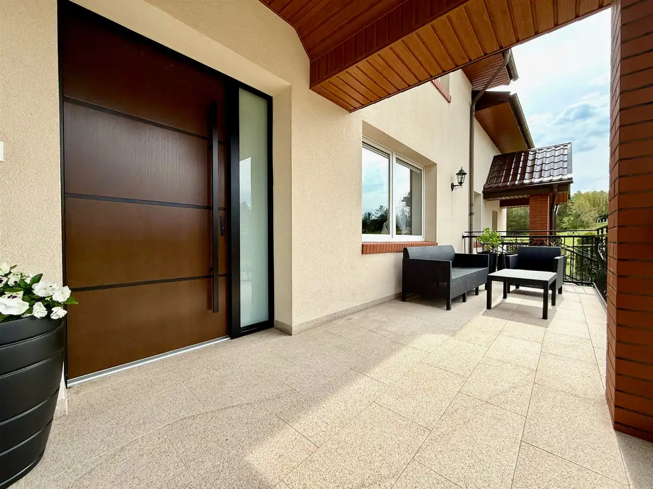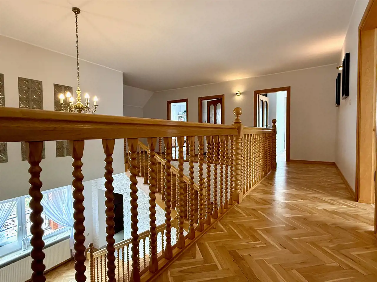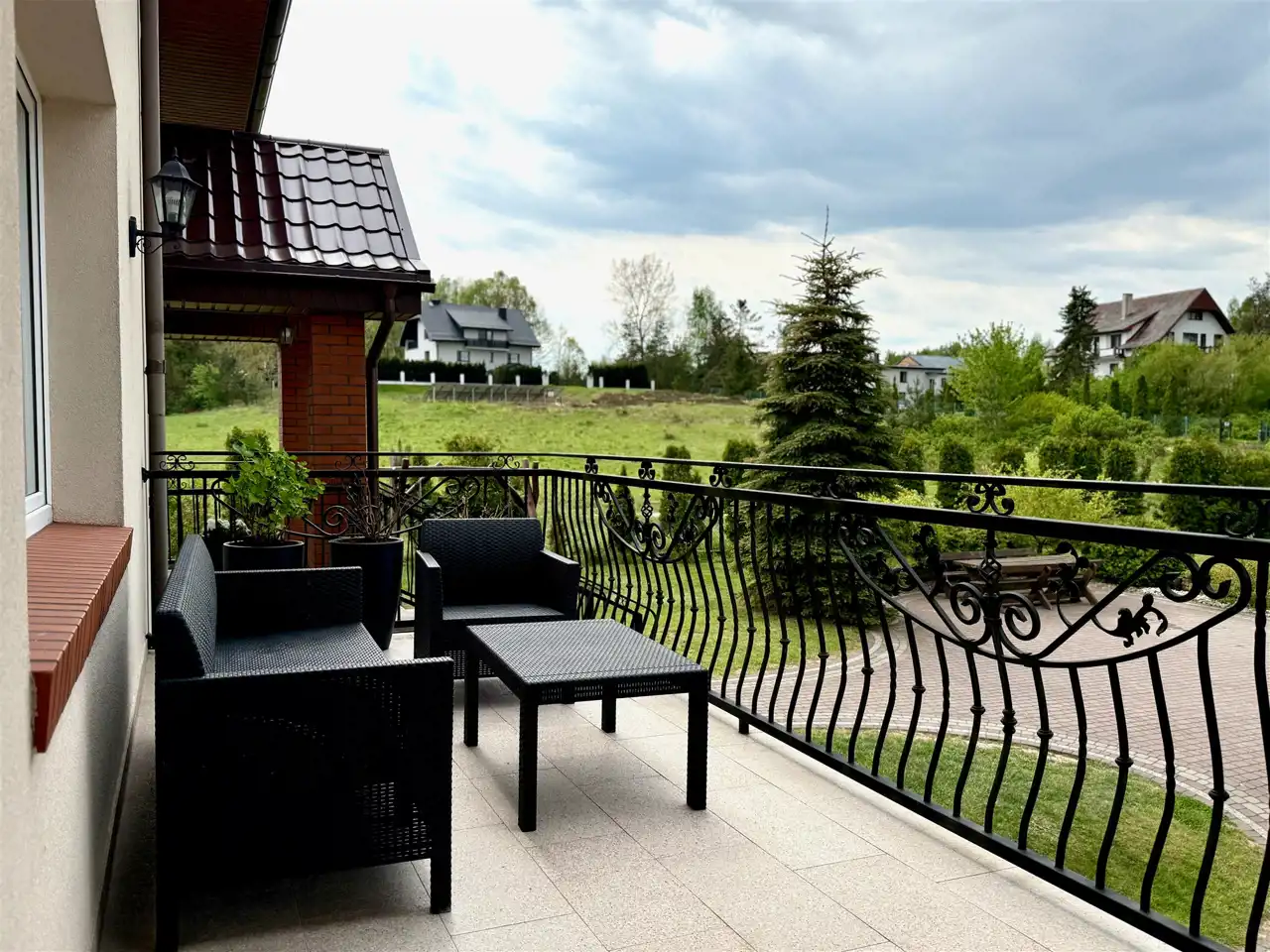 - Dodatkowe atuty: dwa duże balkony, przestronny taras z kutymi balustradami, garaż w części piwnicznej, duża przestrzeń strychowa