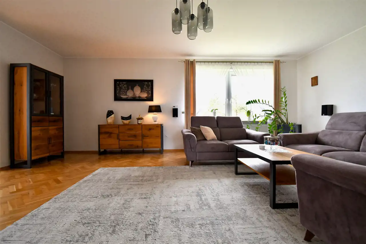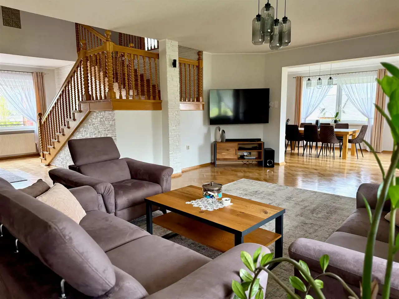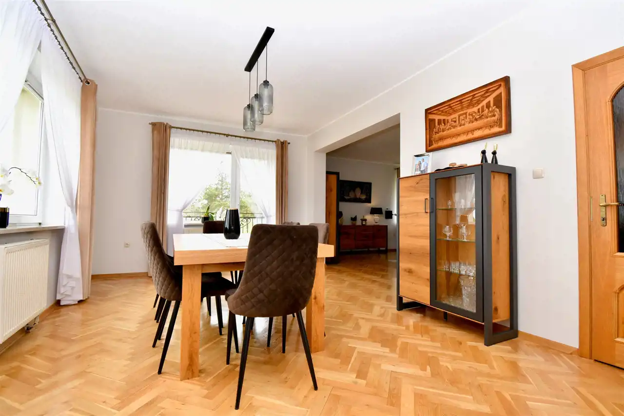 - Liczba pokoi: 6 (w tym 3 sypialnie, gabinet, salon oraz pokoje w oddzielnym mieszkaniu)