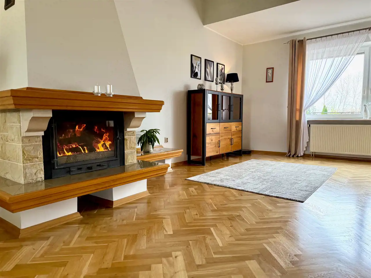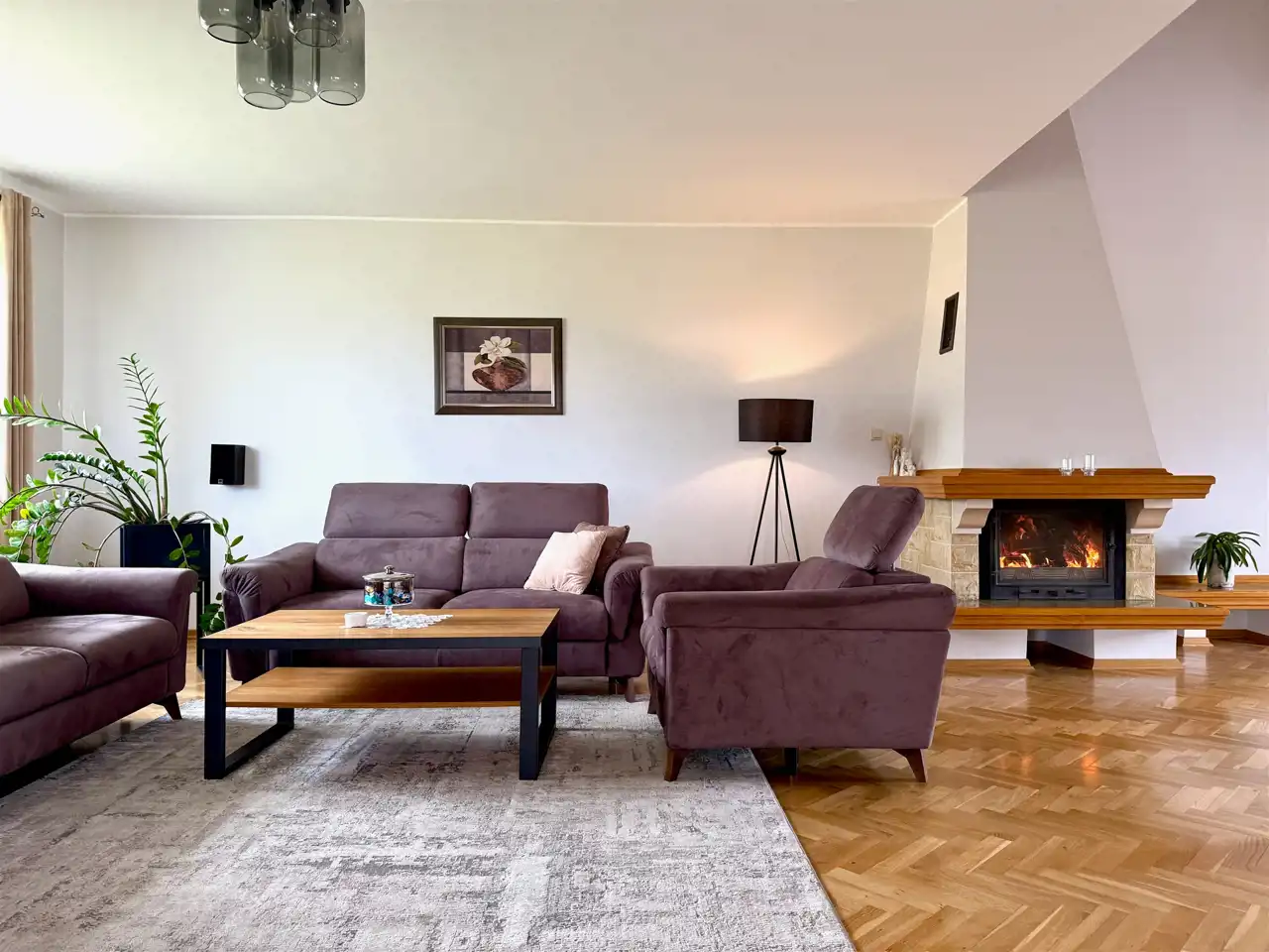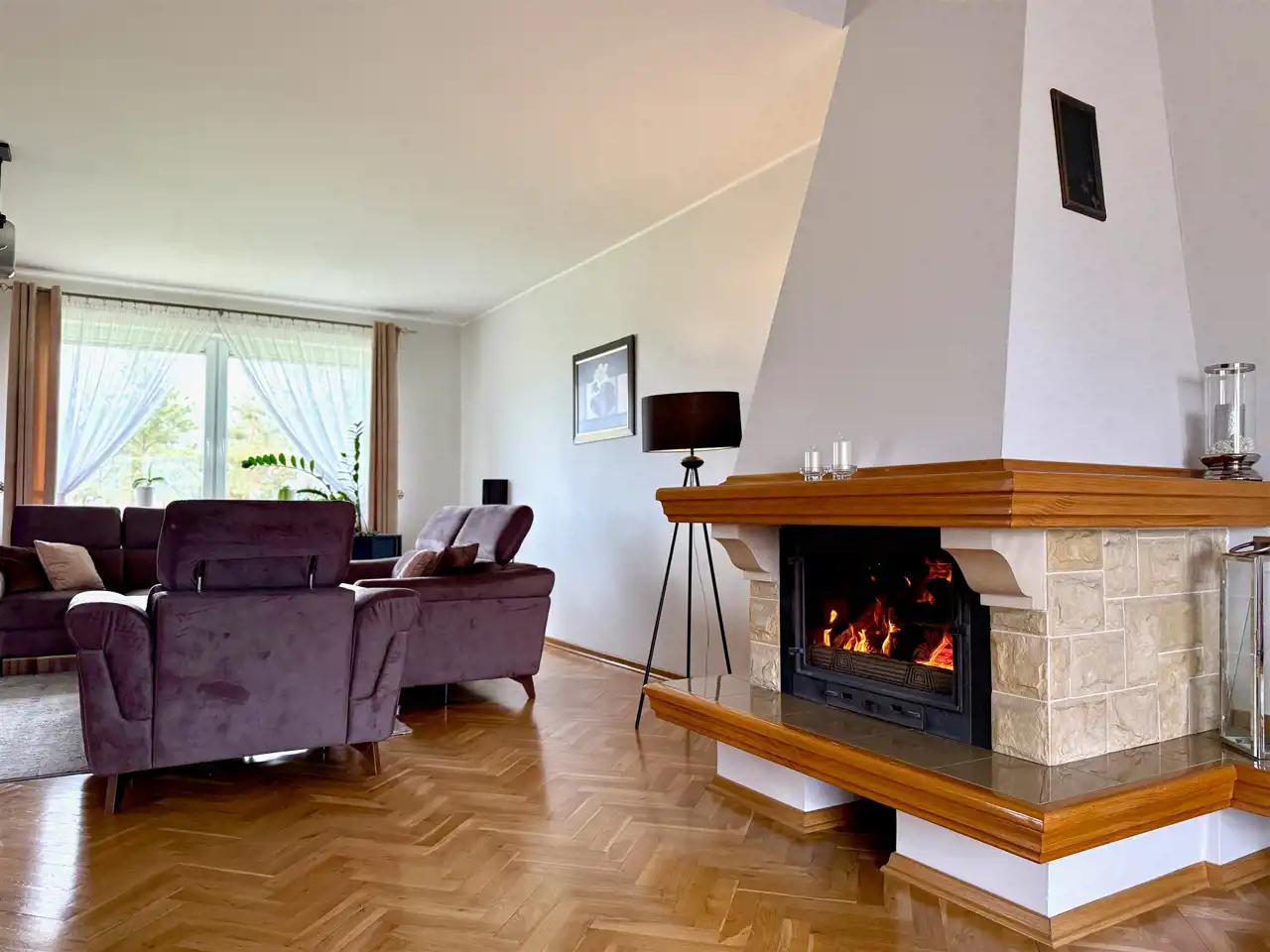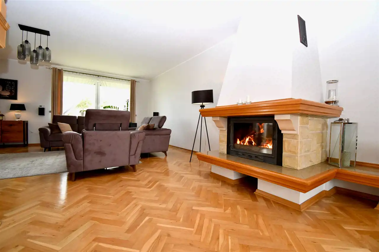 - Ogrzewanie: nowoczesny, zautomatyzowany piec na pelet z podajnikiem opału, alternatywnie – kominek w salonie