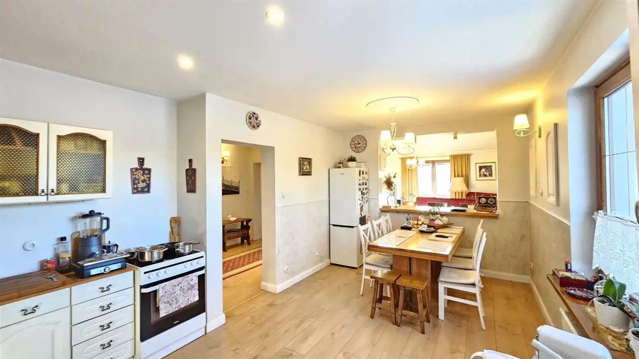 - Duża, funkcjonalna piwnica pod całym budynkiem: 3 przestronne pomieszczenia oraz kotłownia z piecem etażowym na paliwo stałe (z planowaną wymianą na piec 5. generacji).