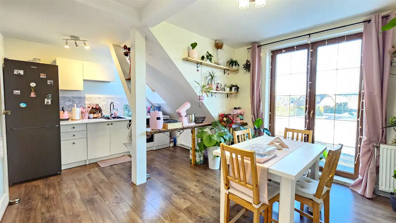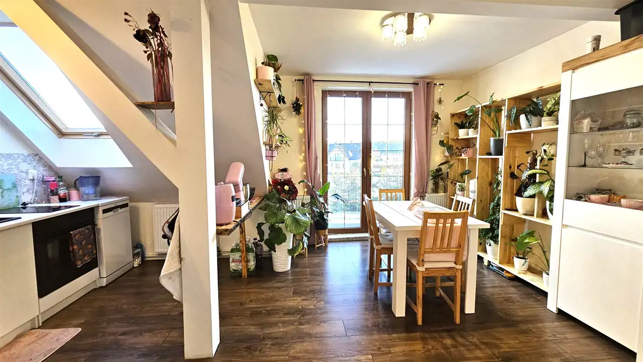 - Kuchnią z jadalnią i wyjściem na balkon.
