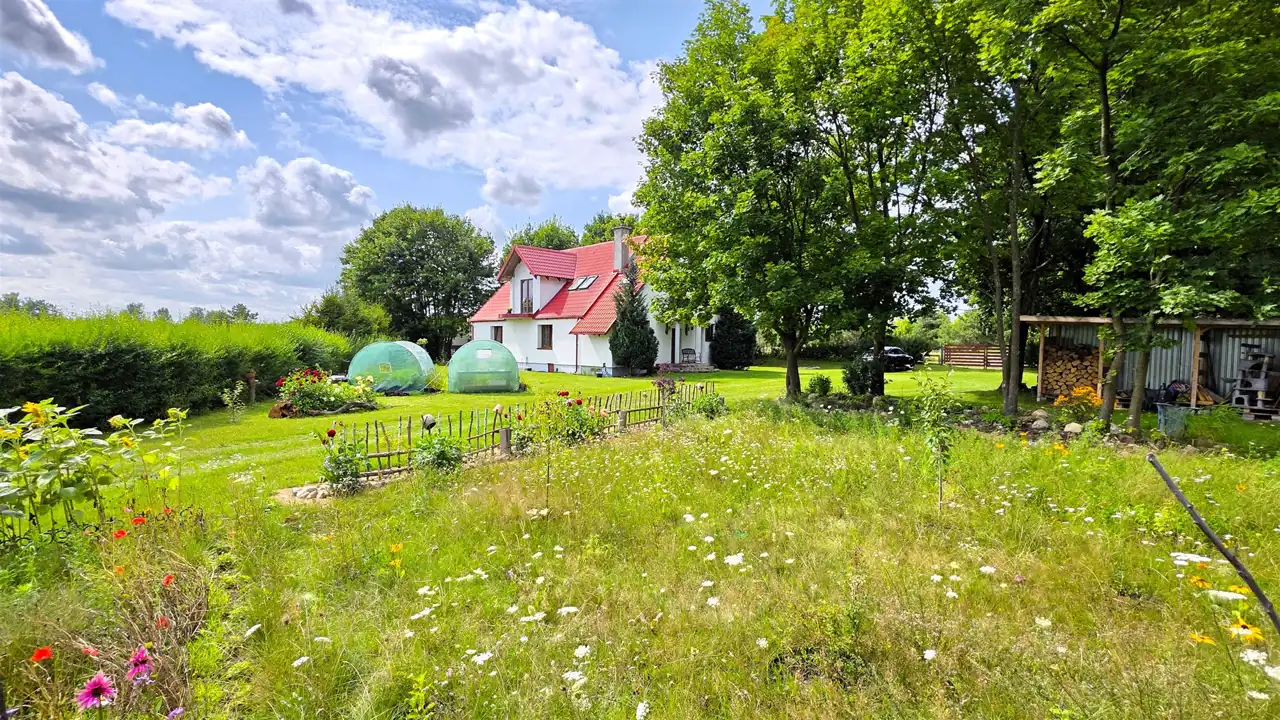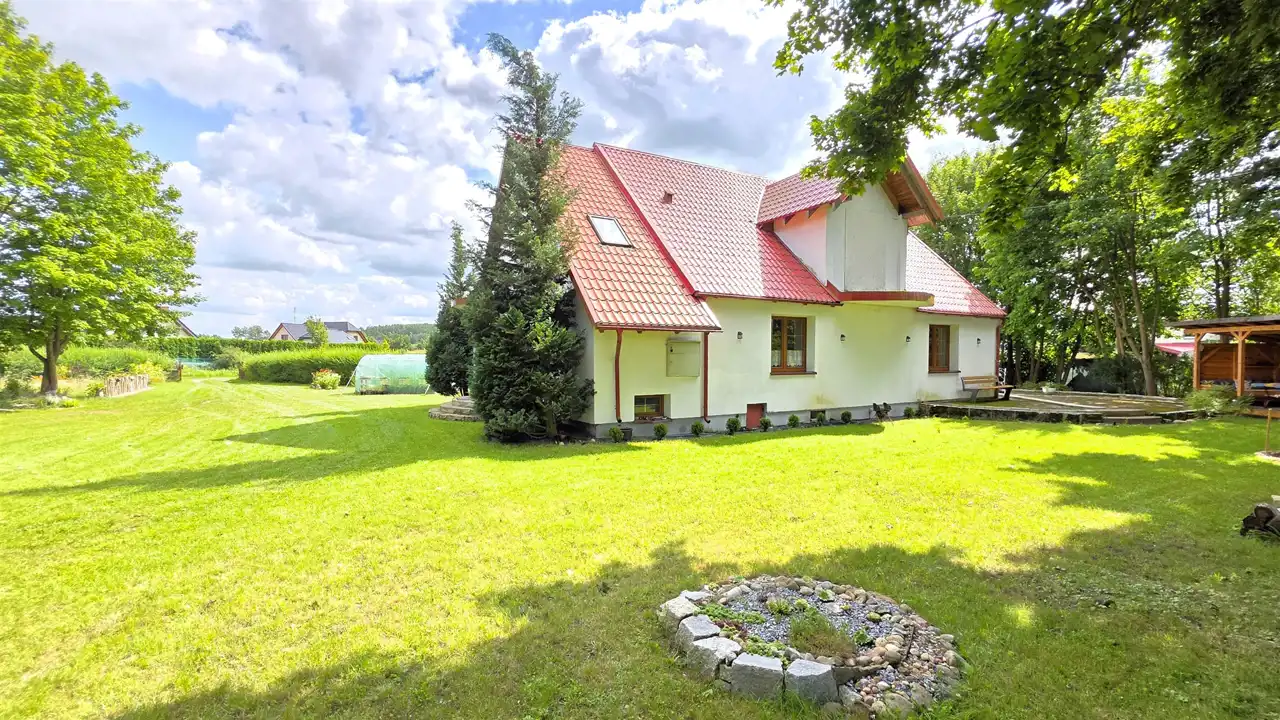 Ogromnym atutem nieruchomości jest garaż metalowy z wiatką na drewno, co zapewnia wygodę przechowywania. Letnia drewniana wiata z prądem to idealne miejsce na spotkania towarzyskie, a murowany grill dodatkowo uprzyjemnia czas spędzany na świeżym powietrzu. Przepiękna działka daje szerokie możliwości aranżacji i użytkowania, zapewniając spokój oraz przestrzeń do relaksu. Nieruchomość otoczona jest malowniczymi terenami, które oferują doskonałe warunki do relaksu i aktywnego wypoczynku. Spacer do pobliskiego jeziora, który zajmuje jedynie 20 minut, pozwala w pełni docenić uroki otaczającej przyrody. To miejsce stanowi idealny azyl dla osób poszukujących harmonii, ciszy i bliskości natury, zapewniając spokój oraz wytchnienie od miejskiego zgiełku. W pobliżu znajdują się szkoły podstawowe, markety Biedronka i Dino oraz różnorodne zakłady usługowe, co zapewnia pełen komfort i wygodę na co dzień. Reasumując ze względu na standard, położenie (zaledwie 17km od miejscowości Sierakowice, 19km od Lęborka i bliskość ekspresowej drogi krajowej S6, łączącej Trójmiasto - Szczecin ) oraz cenę oferta jest godna polecenia.