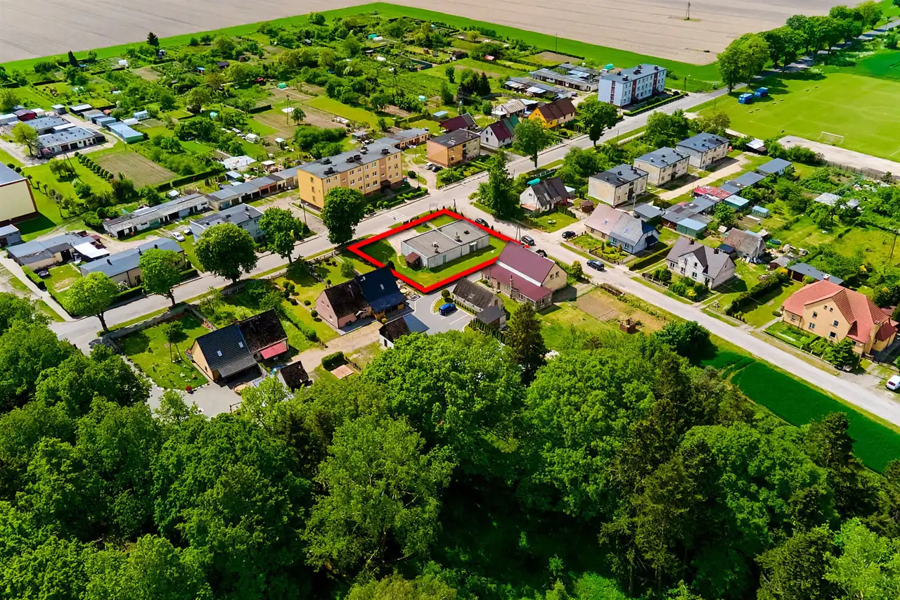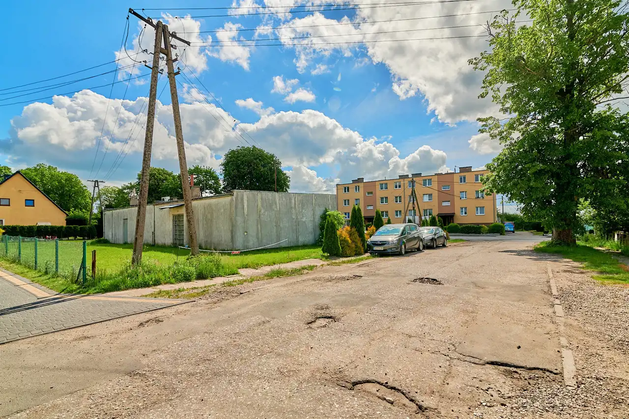 Bardzo dobra lokalizacja - centrum wsi, przy głównej drodze z Łąkie do Debrzna.