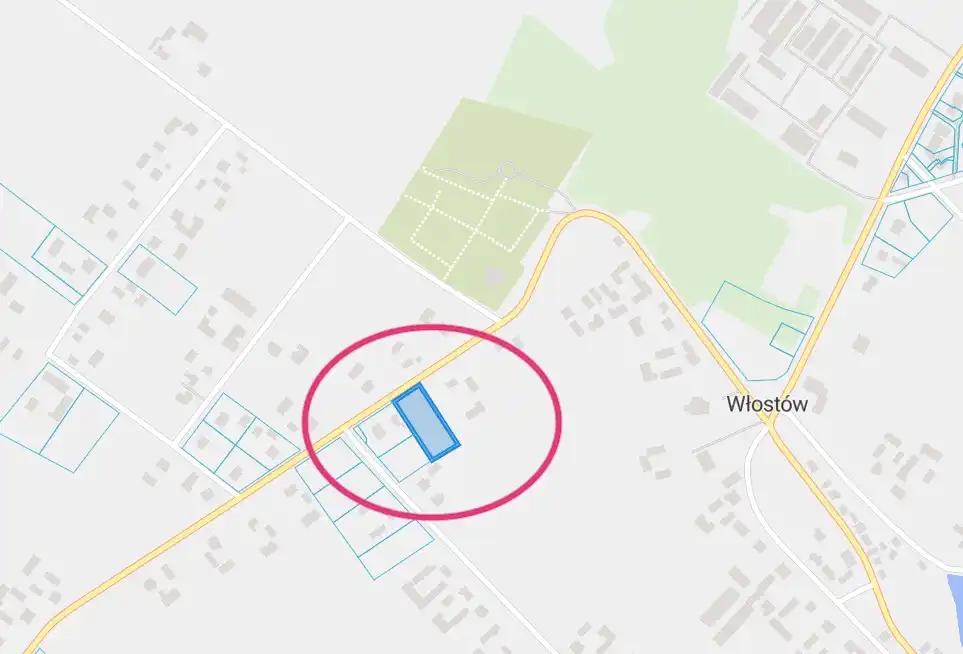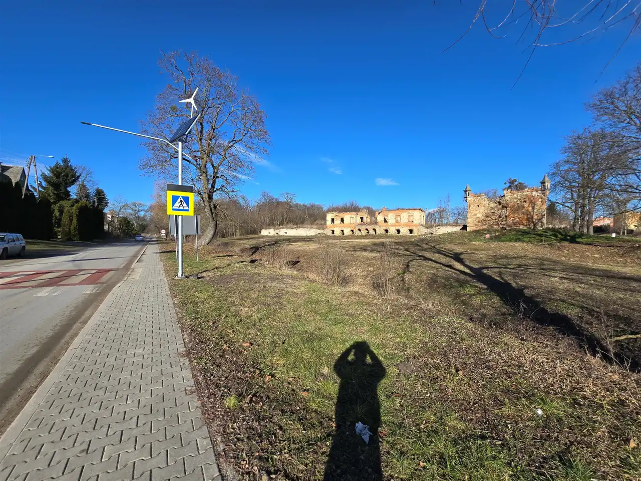 Działka z aktualnymi warunkami zabudowy nowoczesnym domem mieszkalnym, sąsiednie działki to zabudowa domami jednorodzinnymi, blisko ruiny zabytkowego dworu oraz wspaniały stary park.