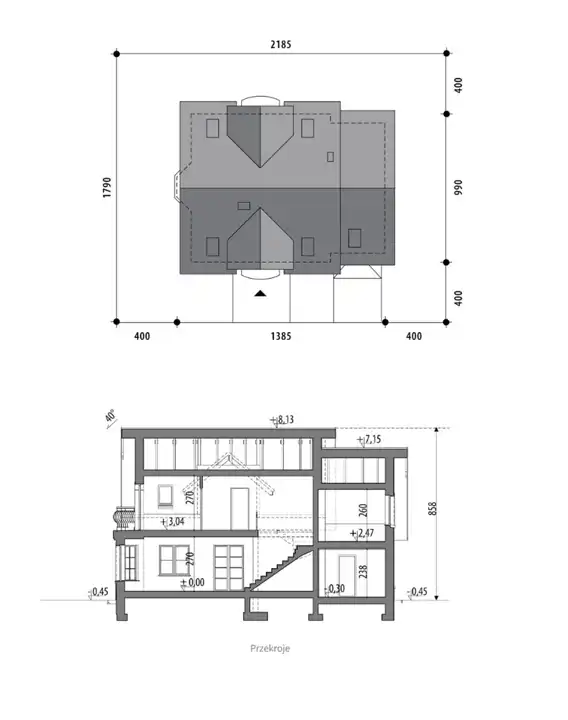 - Klasyczna bryła z trapezowym wykuszem i lukarnami, idealnie wkomponowuje się krajobraz Ziemi Dobrzyńskiej.