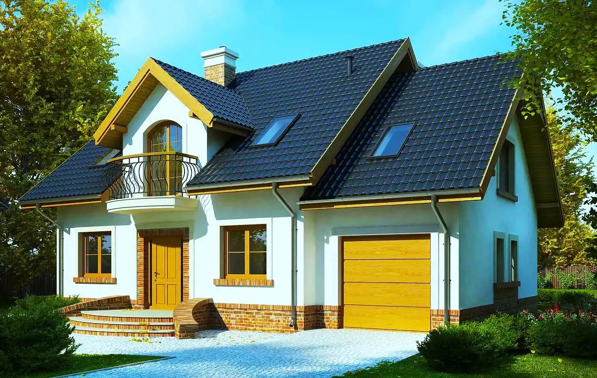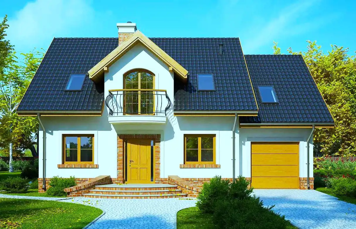 - Dom charakteryzuje się prostą i elegancką bryłą.