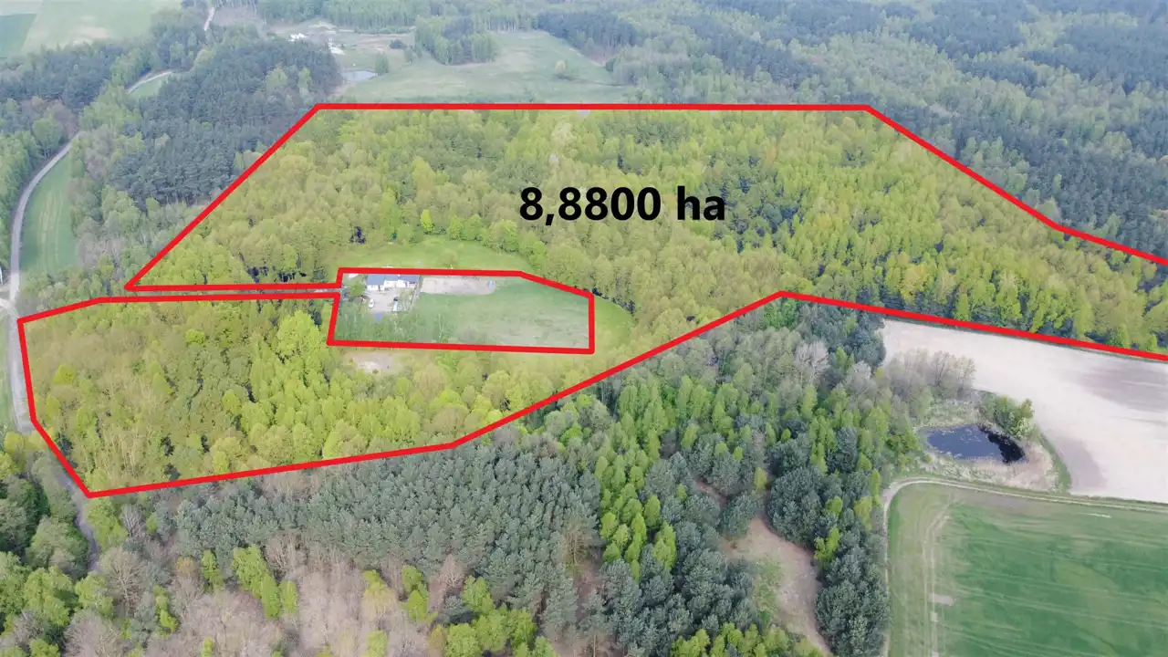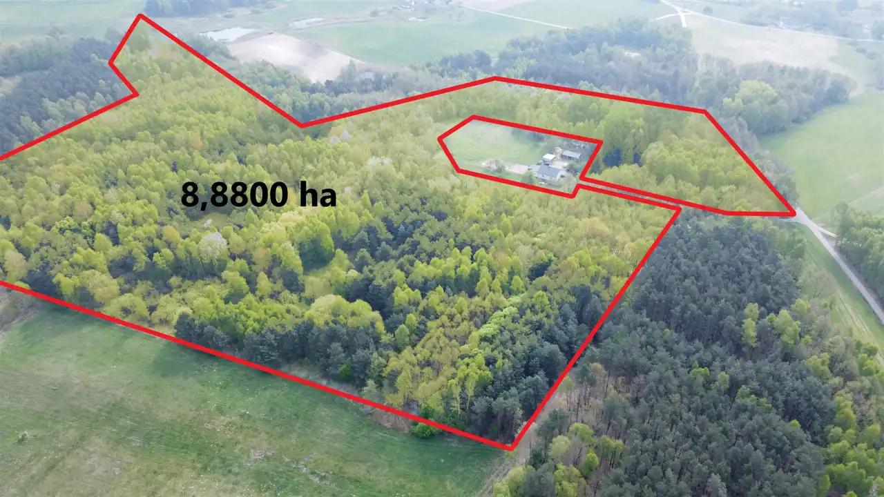 Działka o powierzchni 88 800 m2 o kształcie nieregularnym w odległości około 10 km od Lipna.