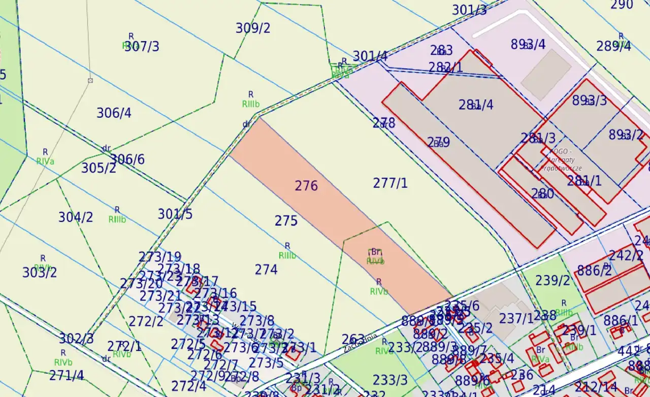 Przeznaczenie gruntu: teren produkcji przemysłowej, magazynów, usług, składów i produkcji.