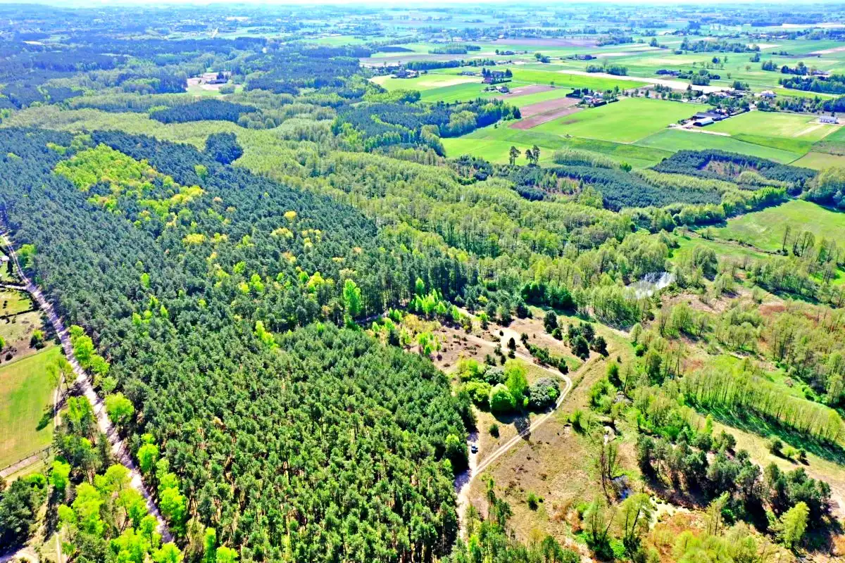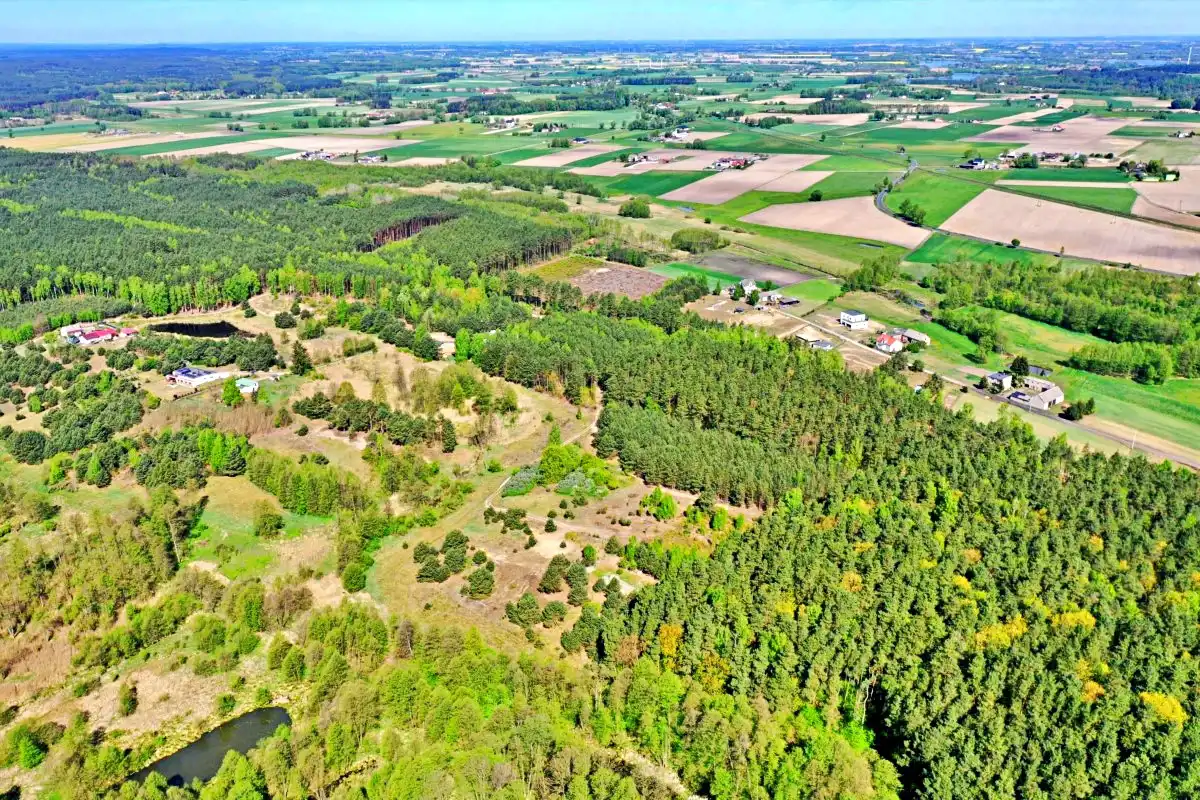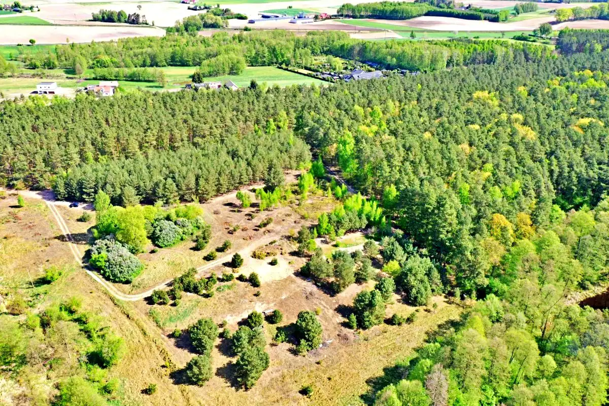 Działka położona w cichej i spokojnej okolicy, w pobliżu lasu.