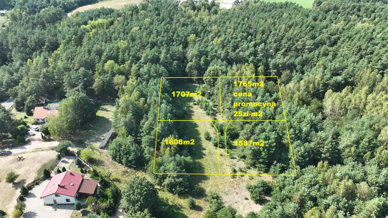 Prąd przy działce. Teren płaski, częściowo porośnięty drzewami, nie wymaga dużych nakładów do rozpoczęcia budowy. Cała działka nieogrodzona. Szerokość frontu pojedynczej działki 37m.