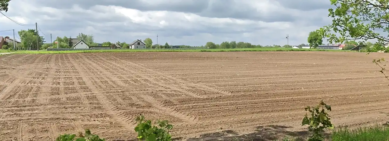 Teren płaski, częściowo porośnięty trawami, nie wymaga dużych nakładów do rozpoczęcia budowy. Cała działka nieogrodzona. Szerokość frontu działki ok 44m. Woda, prąd i sieć telekomunikacyjna oraz kanalizacja gminna w drodze przy działce.