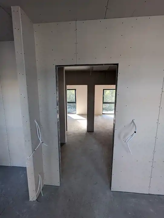 - ŚCIANY DZIAŁOWE - płyty G-K na konstrukcji stalowej, ocieplone wełną mineralną.