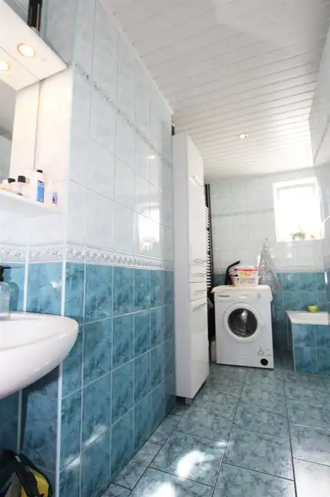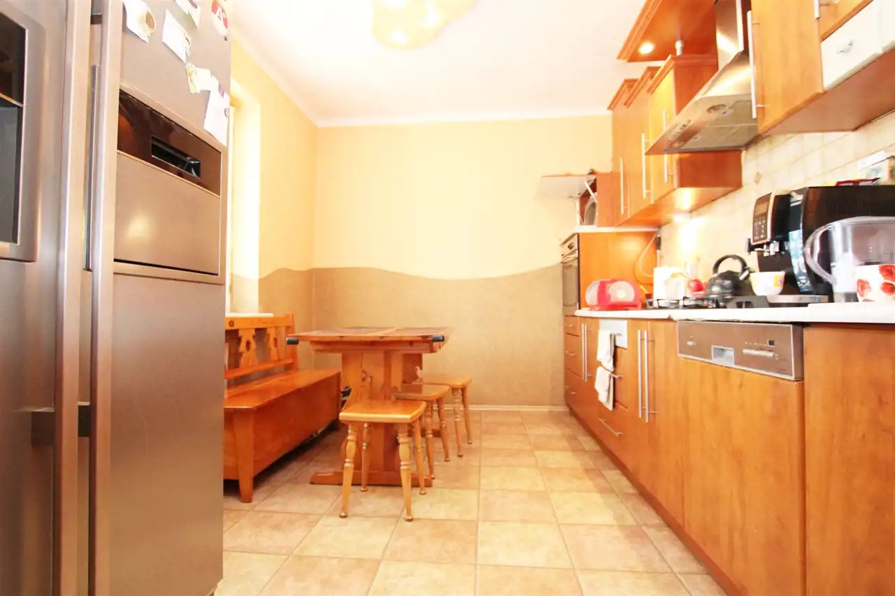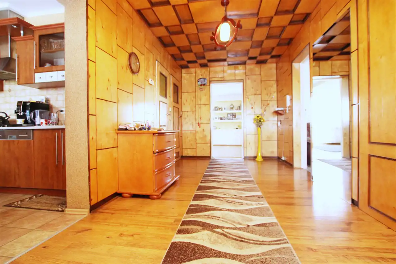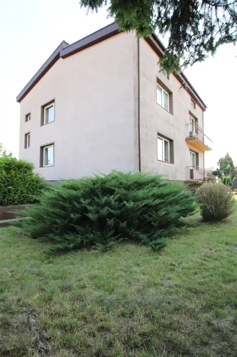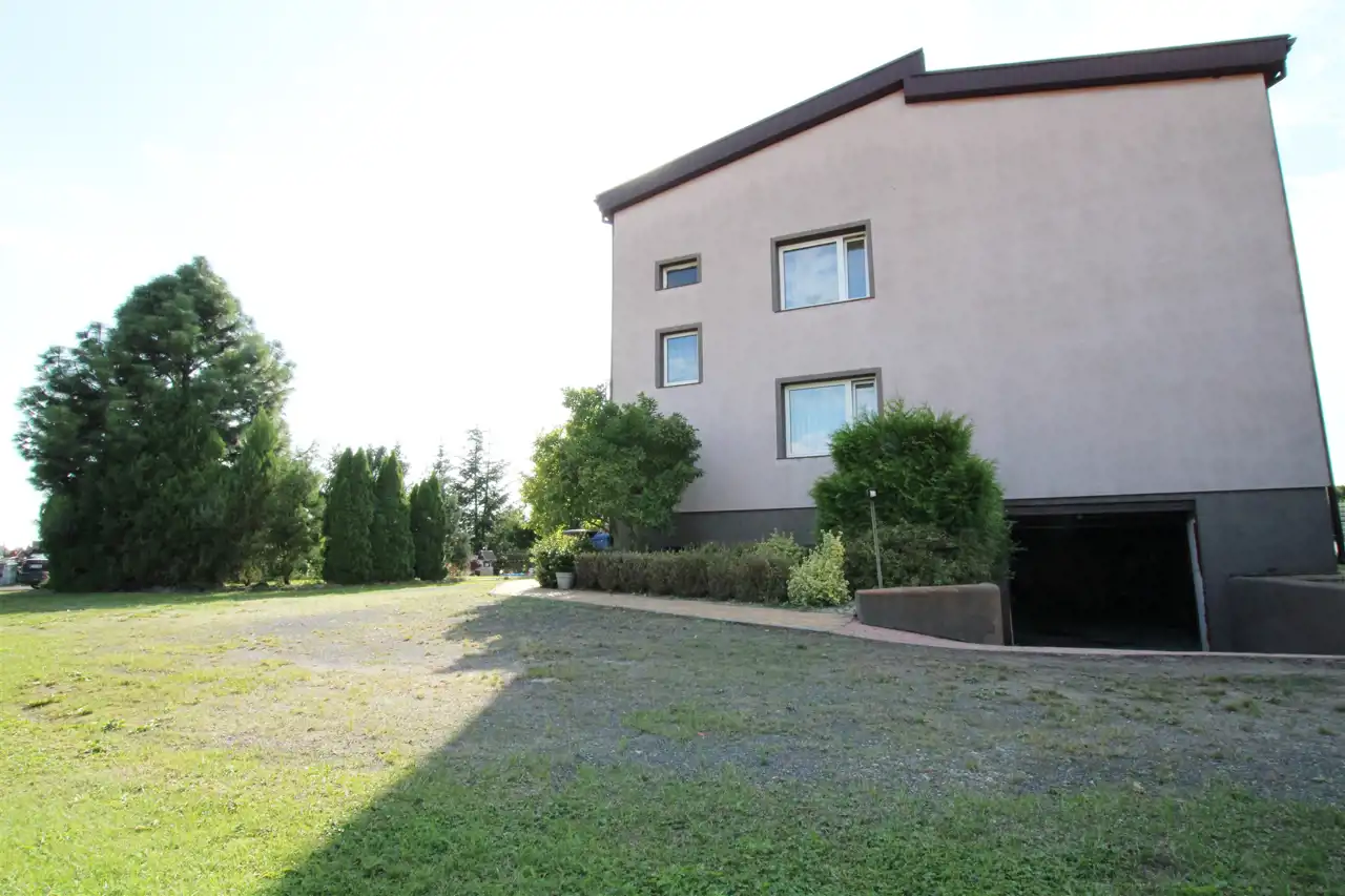 Budynek mieszkalny posiada powierzchnię użytkową około 180 m2 i składa się z piwnicy z garażem, parteru, piętra oraz poddasza. Wnętrze budynku utrzymane w stanie bardzo dobrym - na podłodze znajduje się terakota i panele, ściany w gładzi gipsowej i zabudowie G/K, pomalowane. Instalacja energetyczna jedno i trój- fazowa w budynku mieszkalnym oraz gospodarczym, instalacja wodno- kanalizacyjna miejska, sieć gazowa doprowadzona do budynku.