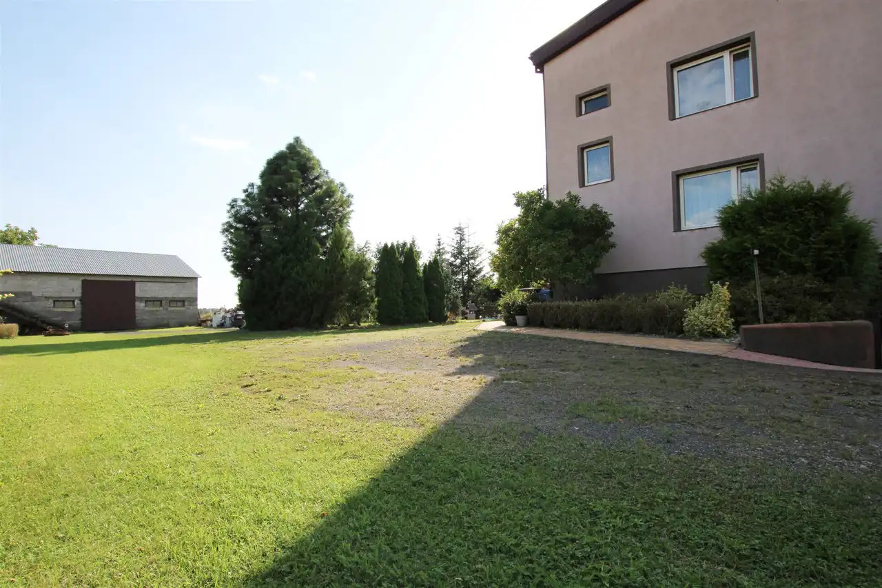 Na działce znajduje się dodatkowo budynek gospodarczy - o powierzchni około 200 m2 wybudowana metodą tradycyjną z pustaka, na dachu znajduje się blacha. Budynek ten posiada przesuwne drzwi garażowe, sprawdzi się jako garaż, ale również nadaje się pod prowadzenie działalności gospodarczej np: warsztat samochodowy.
