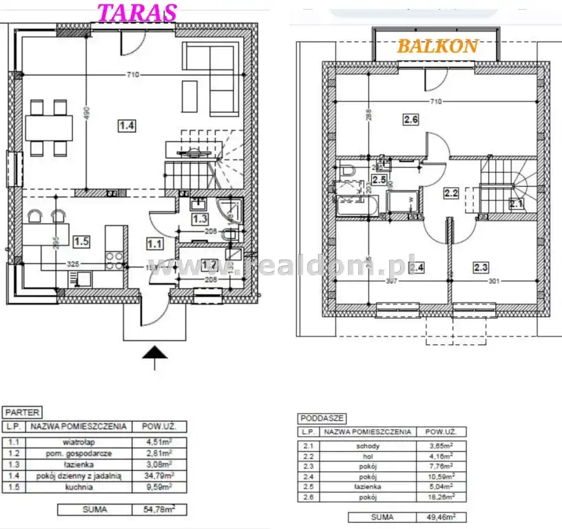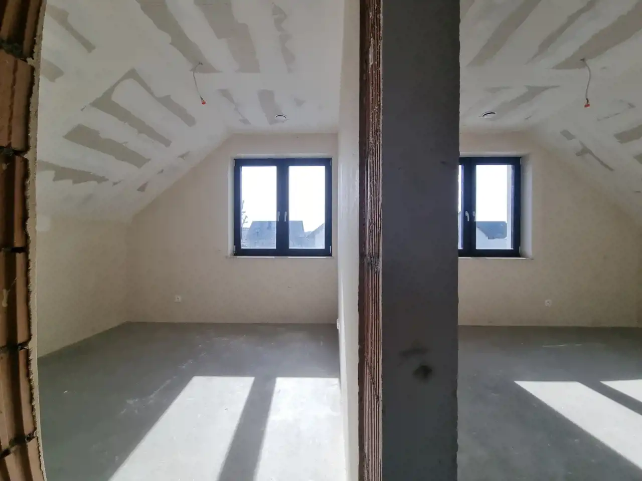 Powierzchnia użytkowa całego lokalu wynosi ok. 104 mkw, powierzchnia całkowita wynosi ok 109 mkw m2 - są małe skosy. Parter składa się z salonu ok 35 mkw, kuchni ok 10 mkw, łazienki i pomieszczenia gospodarczego z oknem w którym będzie piec. Sypialnie mają po ok 8, 10 i 18 mkw, łazienka ponad 5 mkw.