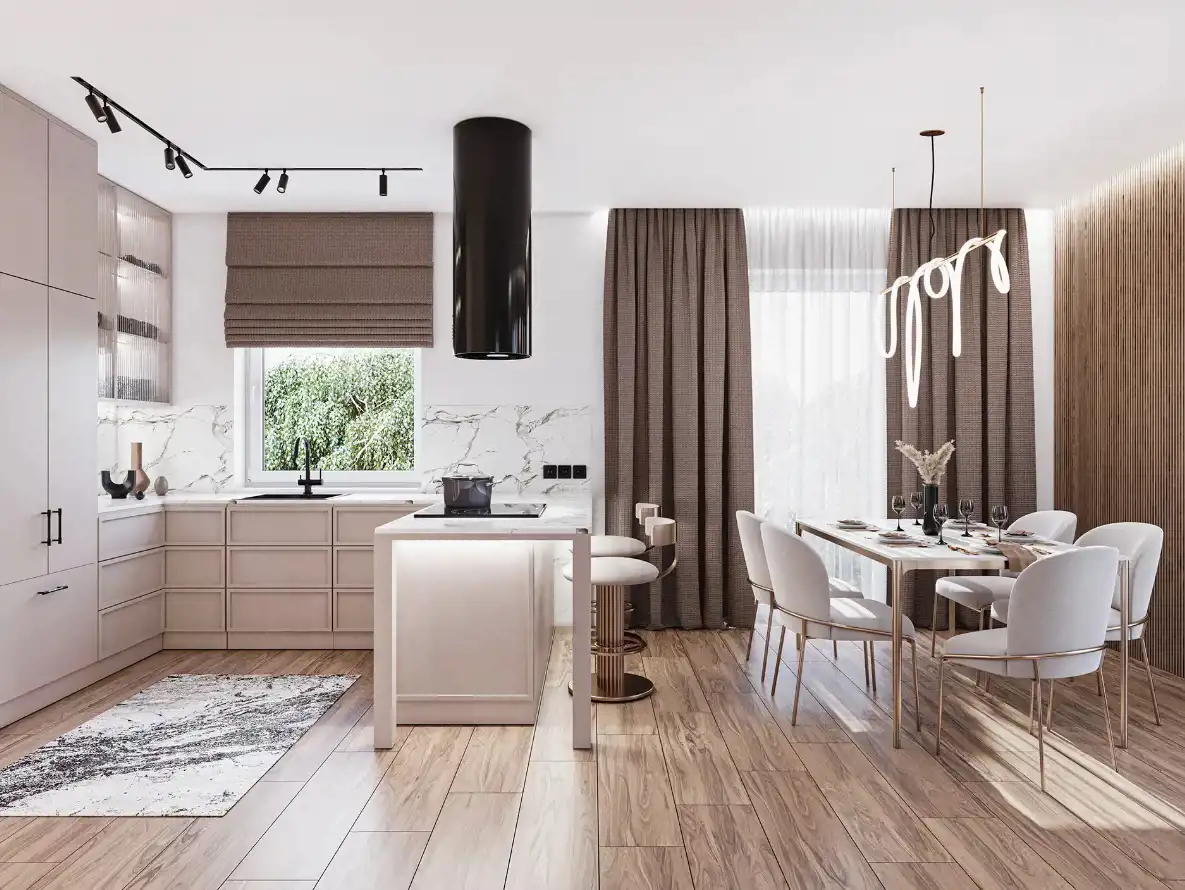 wiatrołap, hol, kuchnia z jadalnią, spiżarnia, salon, łazienka