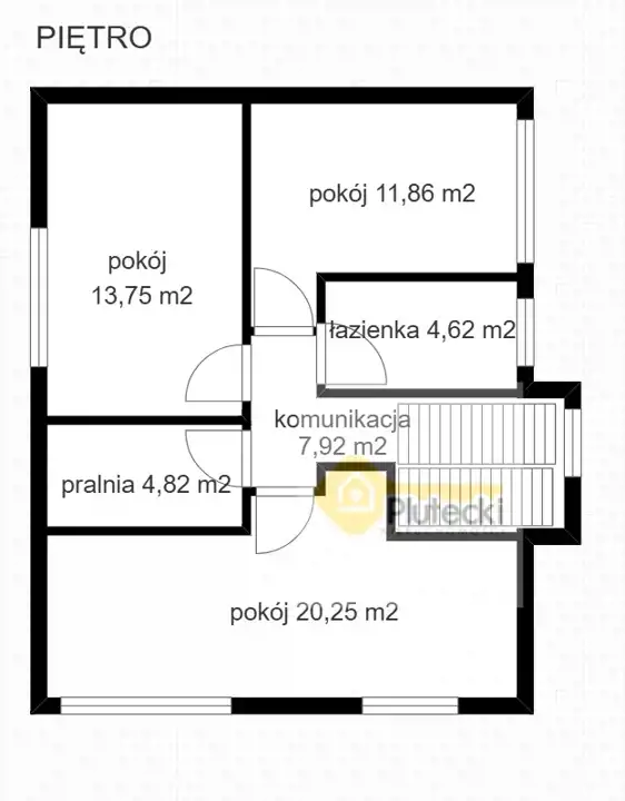 - I piętro: 3 ustawne, spore sypialnie, druga łazienka, pralnia/garderoba