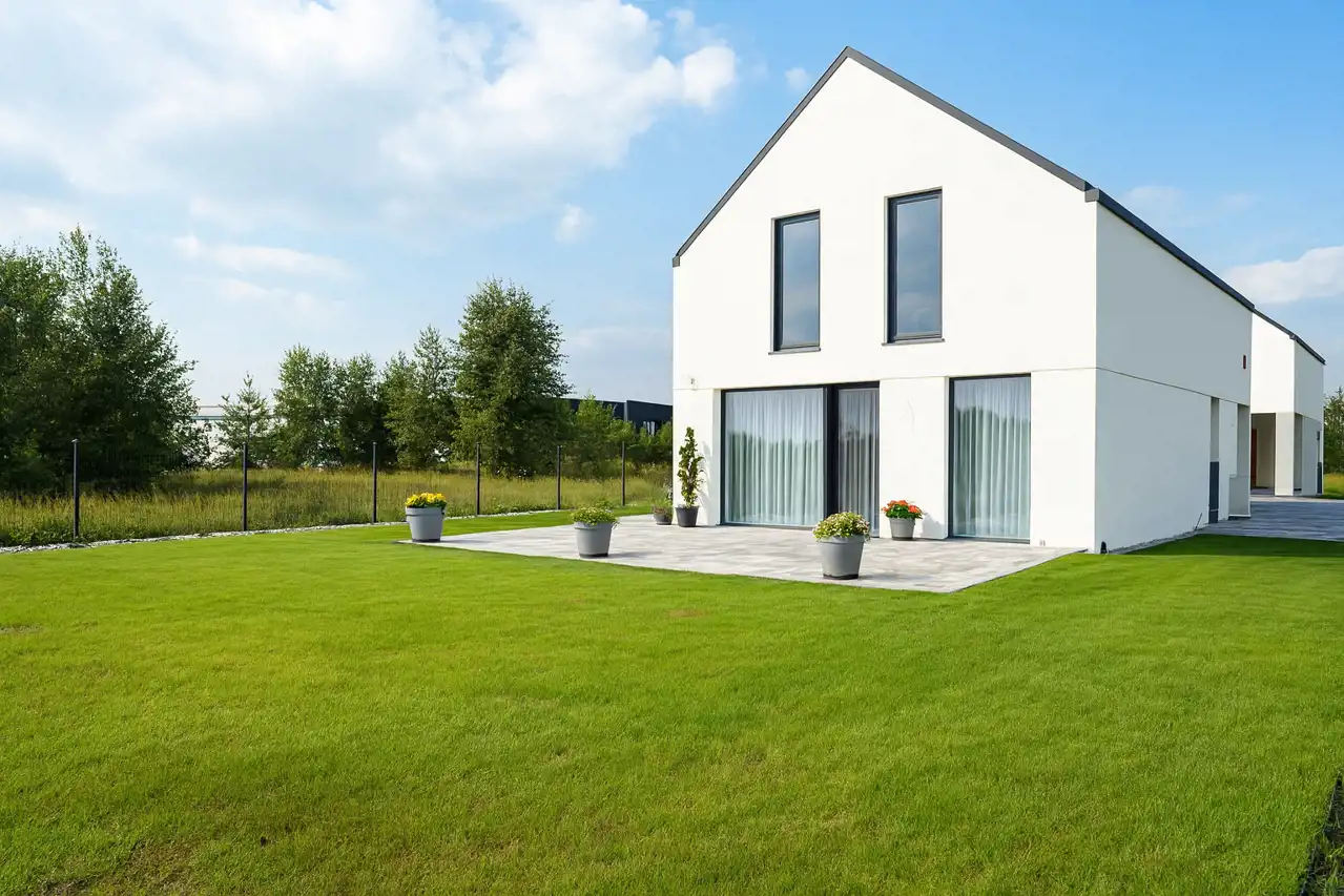 Całość inwestycji: domów, strefy zielonej, obejścia, wjazdu z kostki brukowej tworzy spójną nowoczesną mocno atrakcyjną jakość.
