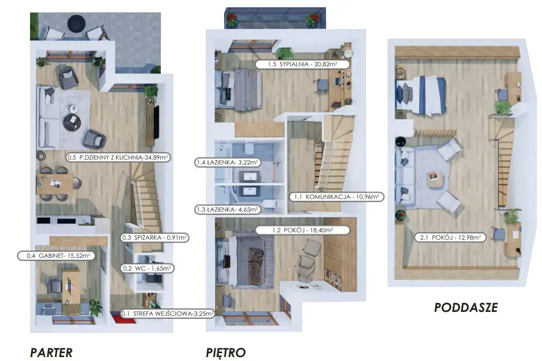 - Sypialnia małżeńska z osobną garderobą i prywatną łazienką