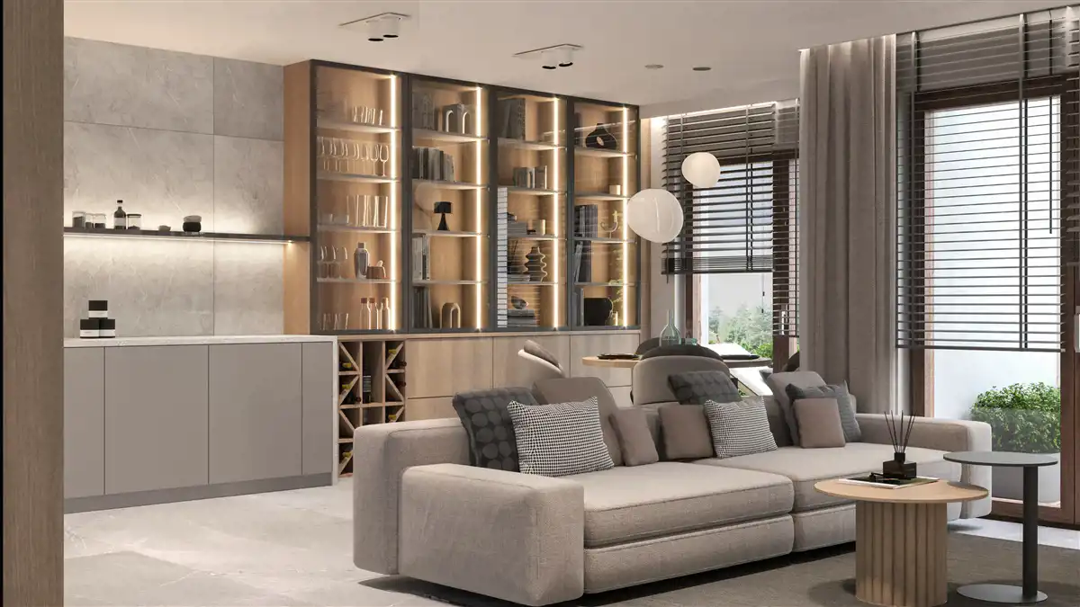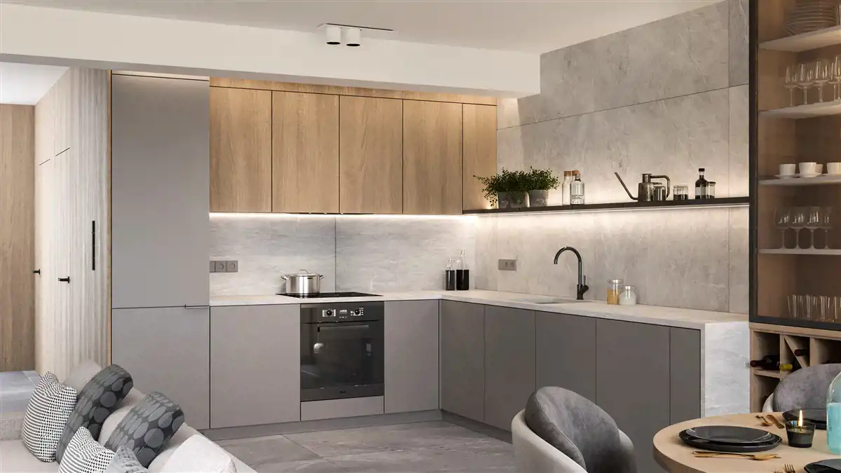 - Przestronny salon połączony z jadalnią i nowoczesną kuchnią