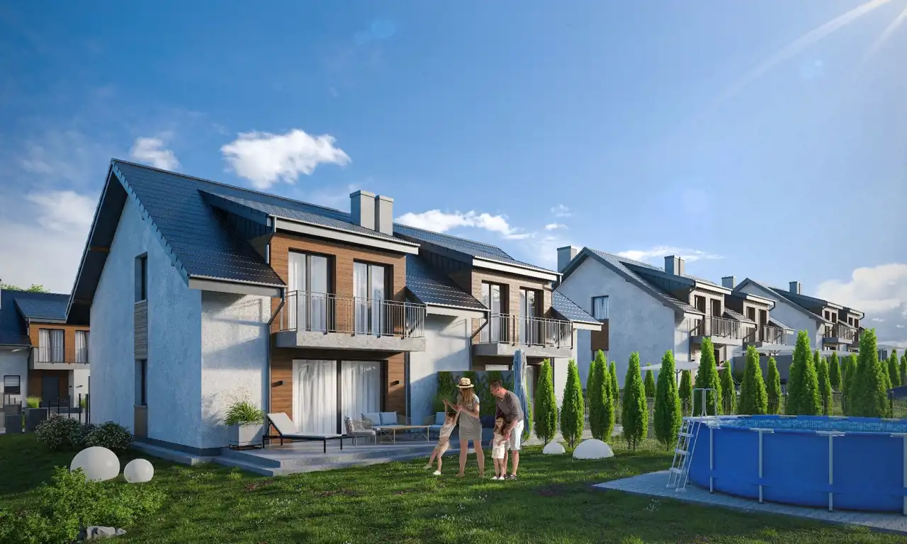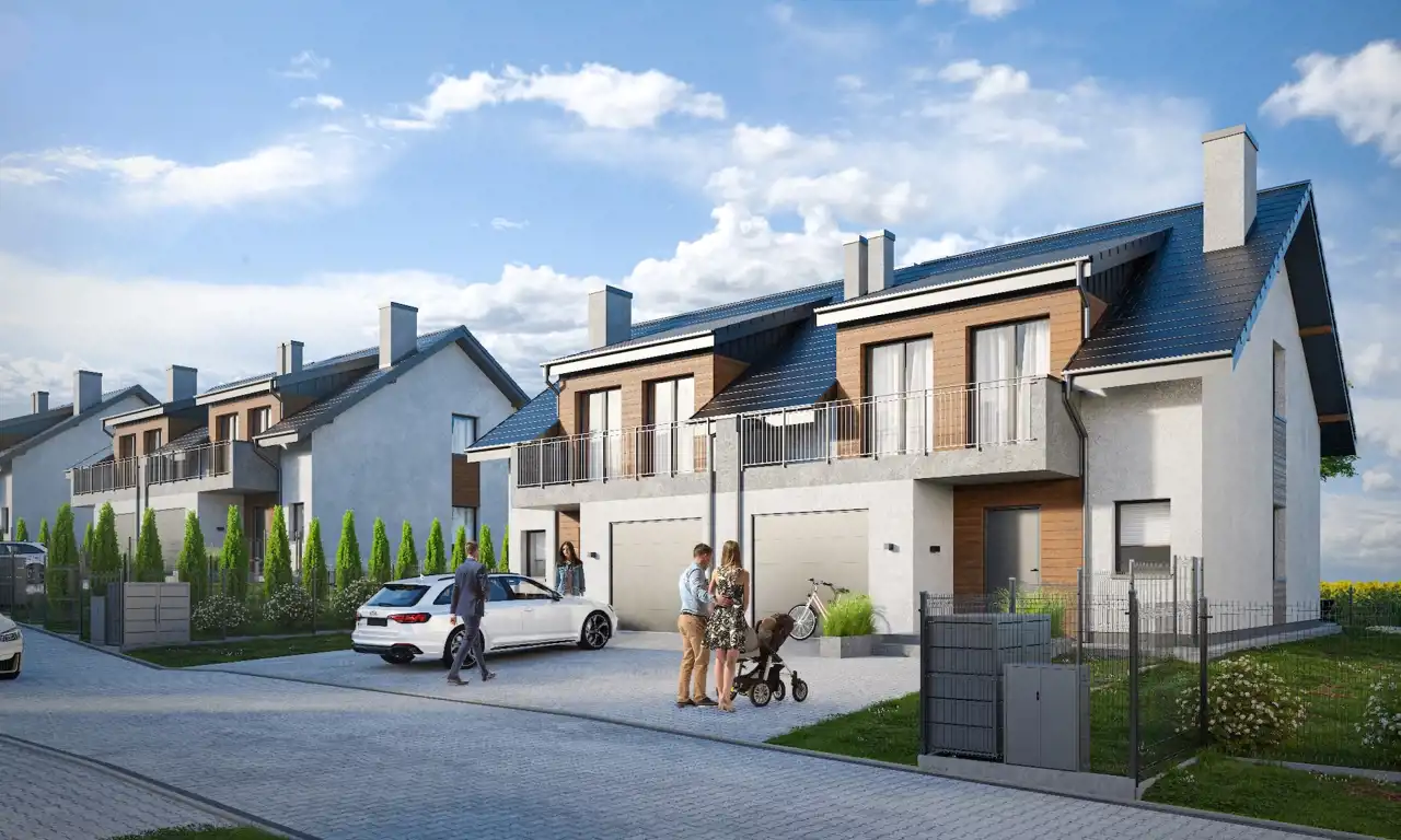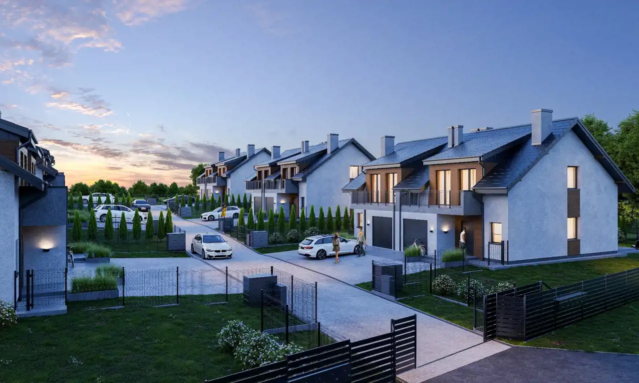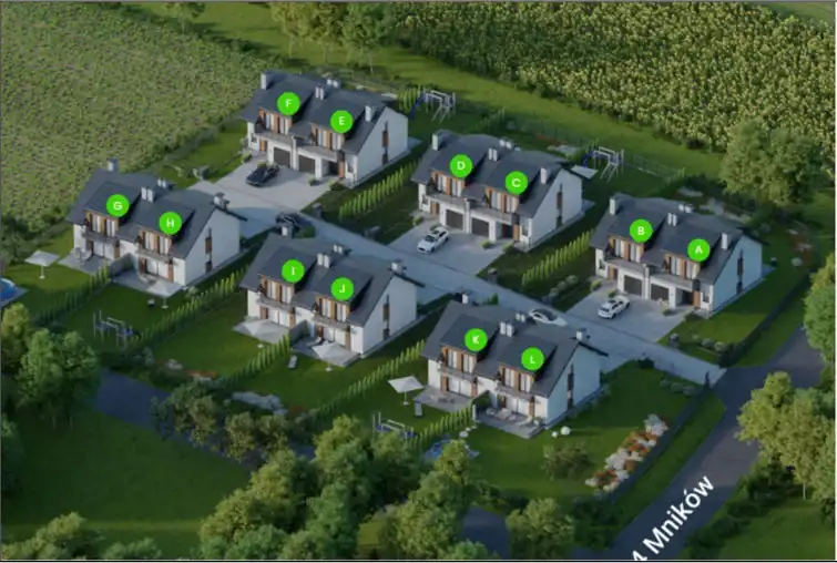 Pozwolenia na budowę 6 bliźniaków (12 domów) według projektu Dom w klemematisach 20 B o powierzchni użytkowej 121,51 m2 z możliwością powiększenia na podstawie projektu zamiennego do 128,51m2. Przygotowany jest też projekt podziału na 12 działek pod każdy dom oraz drogę wewnętrzną.