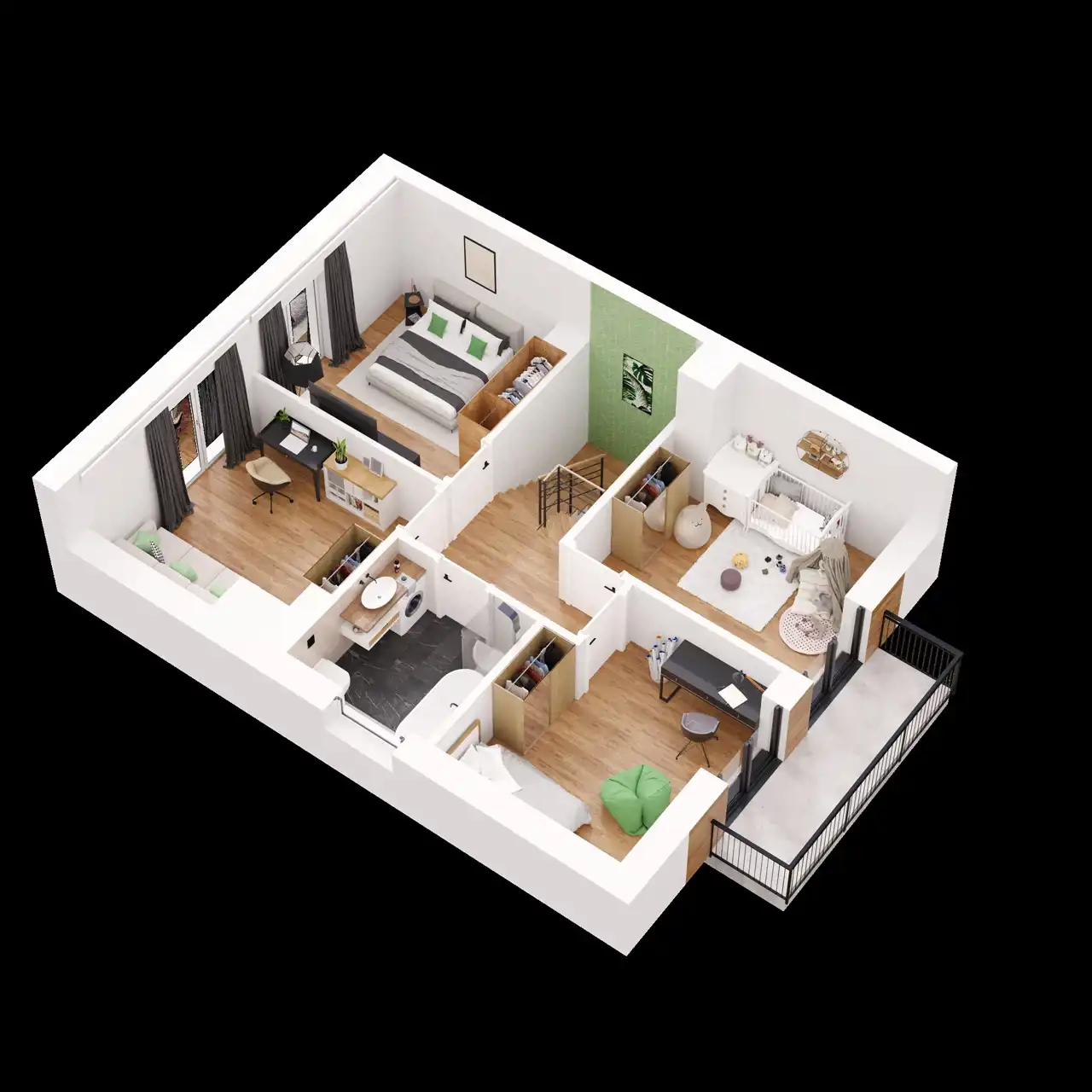 Poddasze: hol (4,72m2), pokój (10,47m2), pokój (9,96m2), łazienka (6,36m2), pokój (10,66m2), pokój (10,94m2) - razem 53,11m2