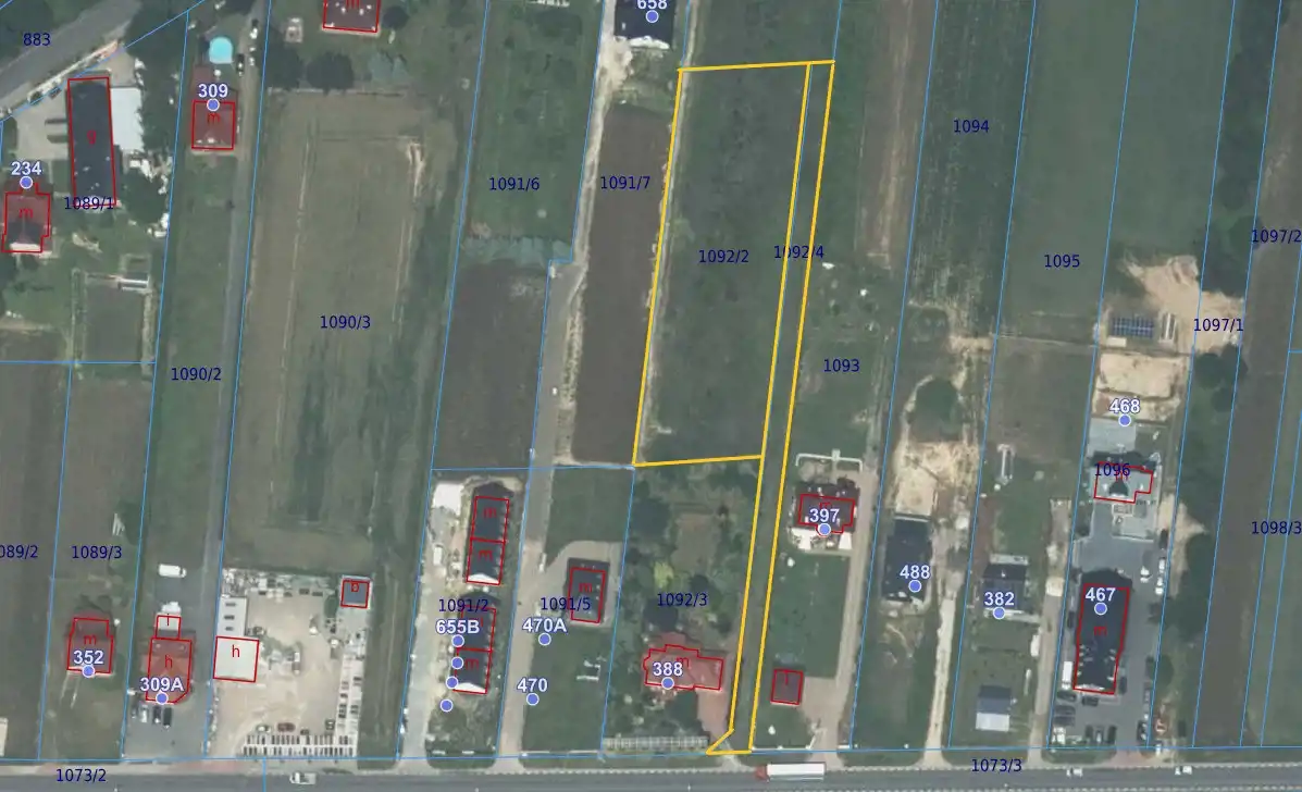 - Media Woda: w drodze; Kanalizacja: w pobliżu