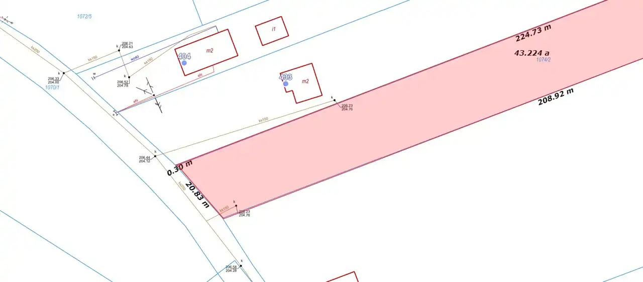 Działka o powierzchni 43 arów (pole powierzchni według ewidencji gruntów w portalu MPZP gminy liszki podaje 0,4271HA) w kształcie przybliżonym do prostokąta i wymiarach ok 21 m x 215 m sprawia, że jest idealną propozycją pod inwestycję deweloperską do zabudowy domów bliźniaczych.