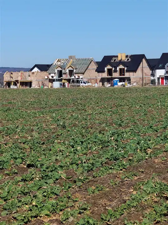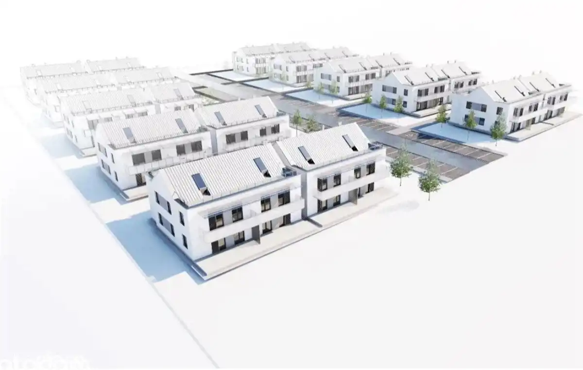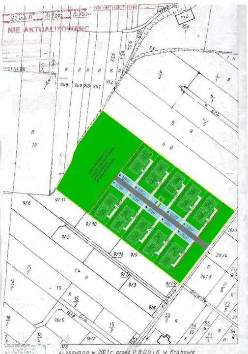 Właściciel zrobił wstępny projekt na 40 budynków mieszkalnych dwu lokalowych w zabudowie bliźniaczej czyli 80 mieszkań wstępnie na ok. 6000 PUM