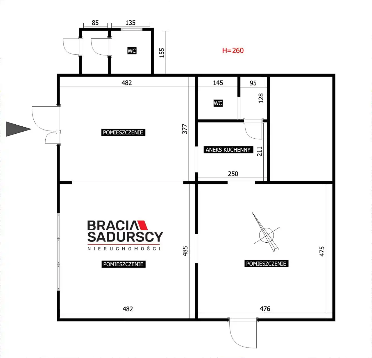✔ 2 lub 3 duże pomieszczenia do obsługi klientów w zależności od potrzeb