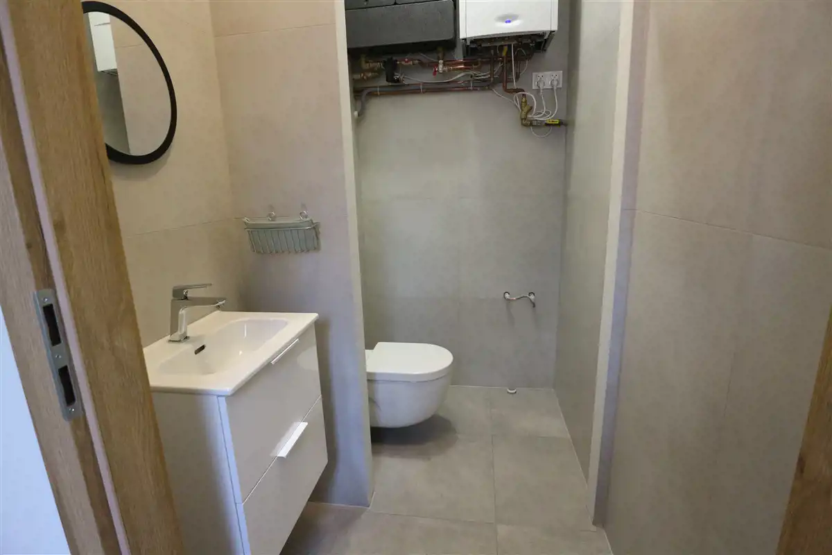 Pomieszczenia ogrzewane poprzez ogrzewanie gazowe własne piecem II-funkcyjnym. Ogrzewanie podłogowe