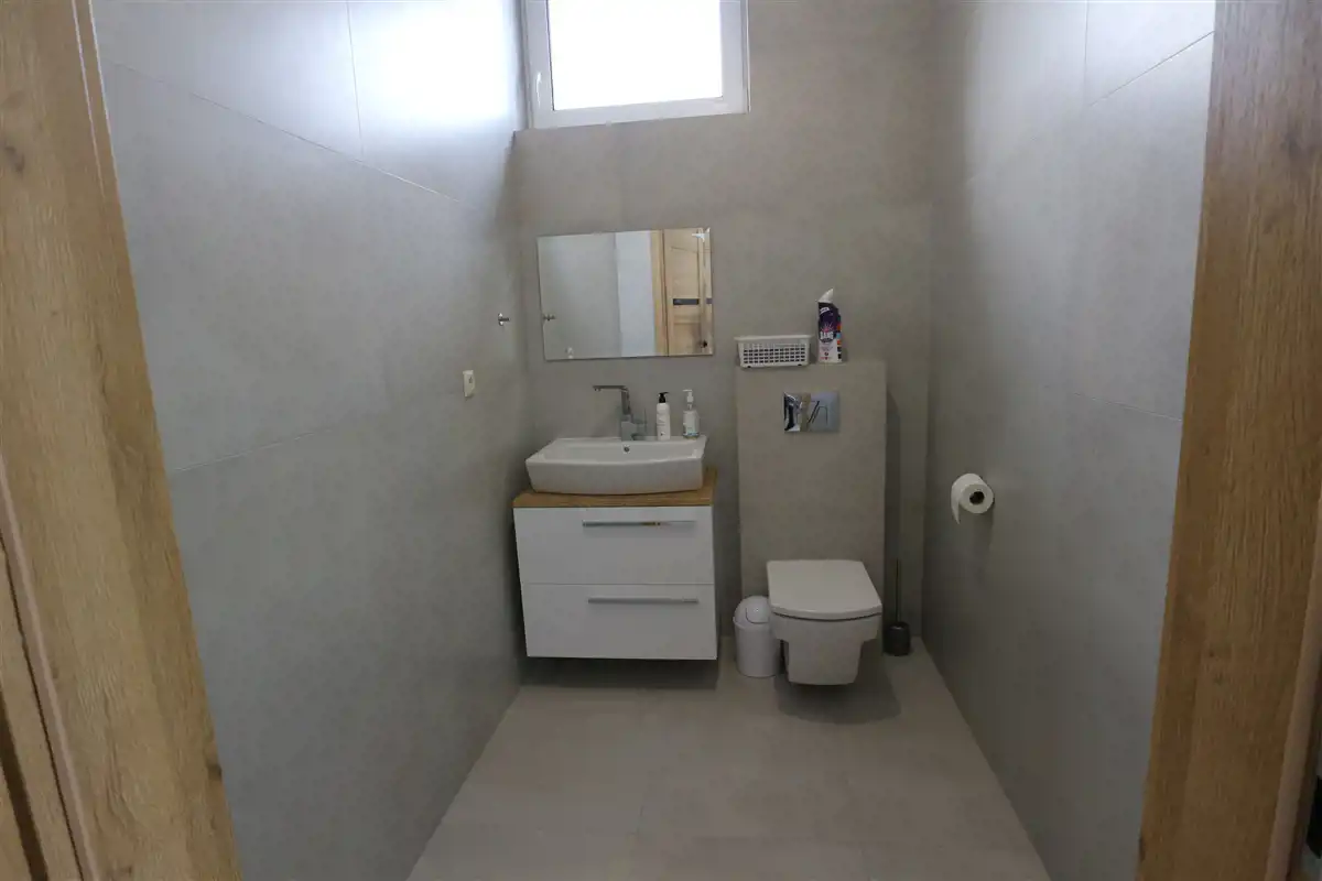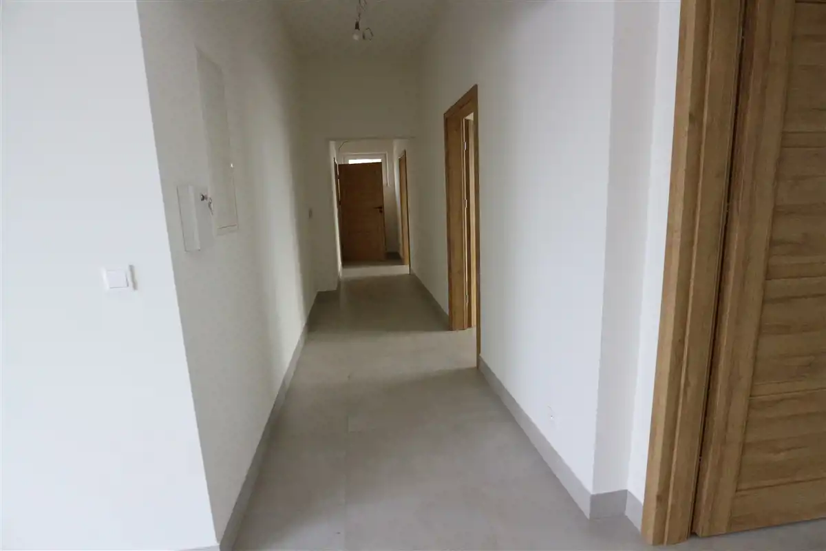 Na podłogach gres. Wysokość pomieszczeń 3 metry.