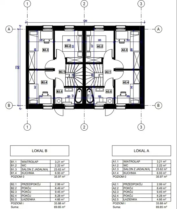 Przemyślany układ pomieszczeń na dwóch poziomach