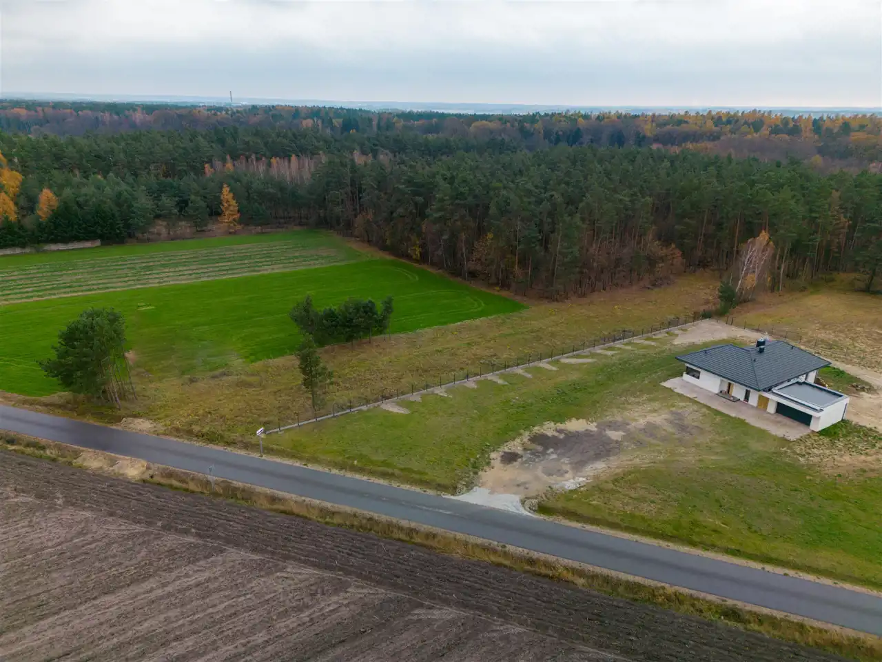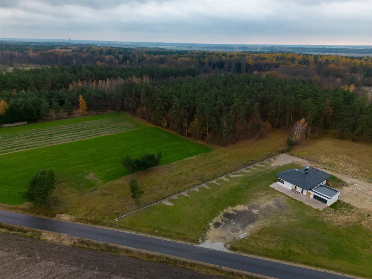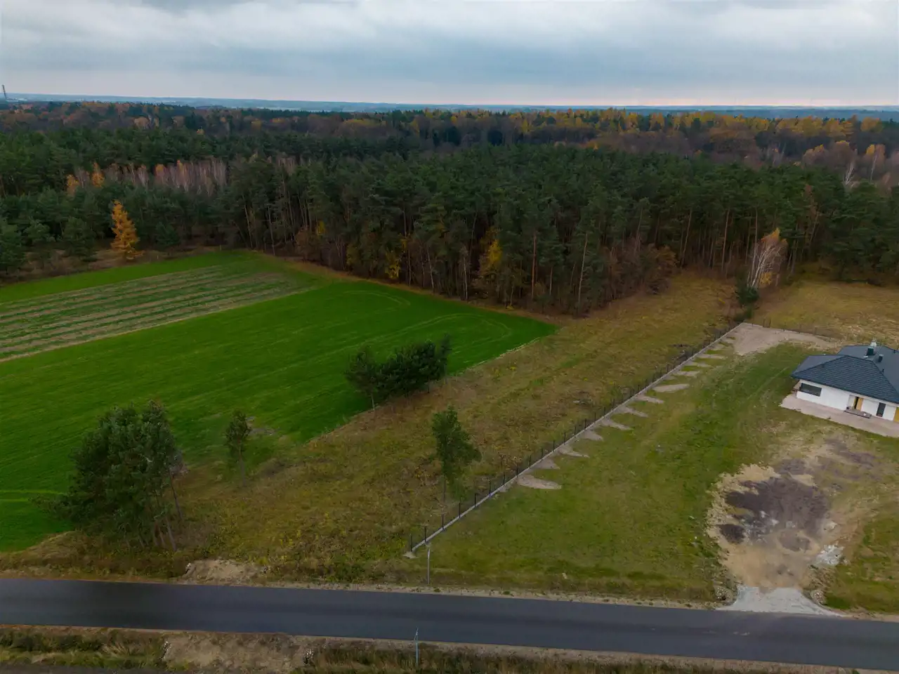 Działka posiada bezpośredni dostęp od głównej drogi. Ma płaski i regularny kształt.