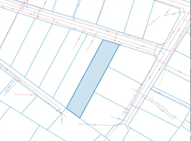Działka: niezabudowana, w kształcie przybliżonym do prostokąta o wymiarach 13,5m x ~67,5m.