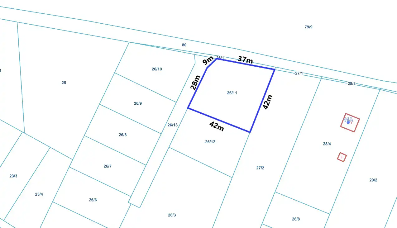 W pobliżu dostępne jest 7 działek do zabudowy o powierzchniach od 948-1245m2.