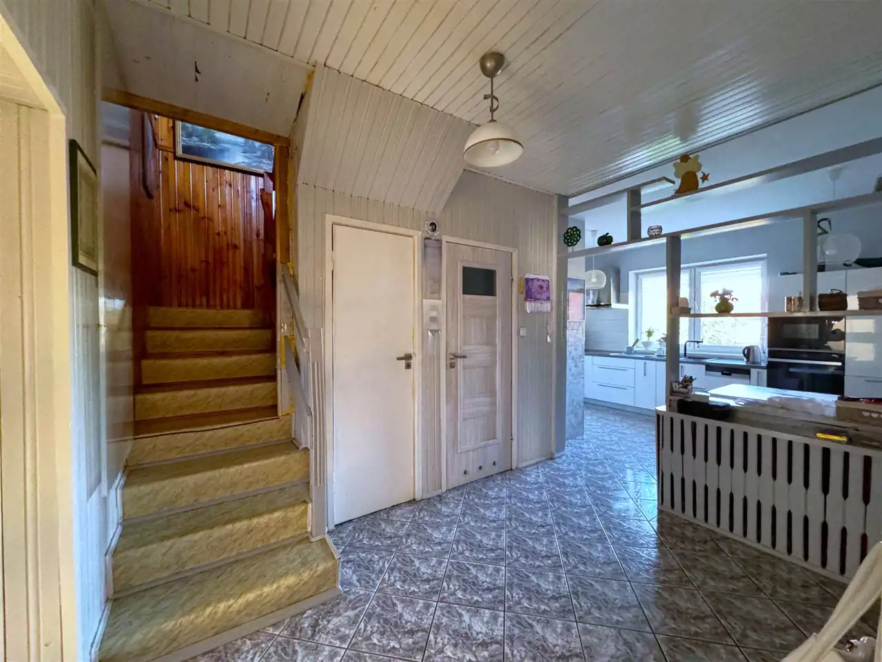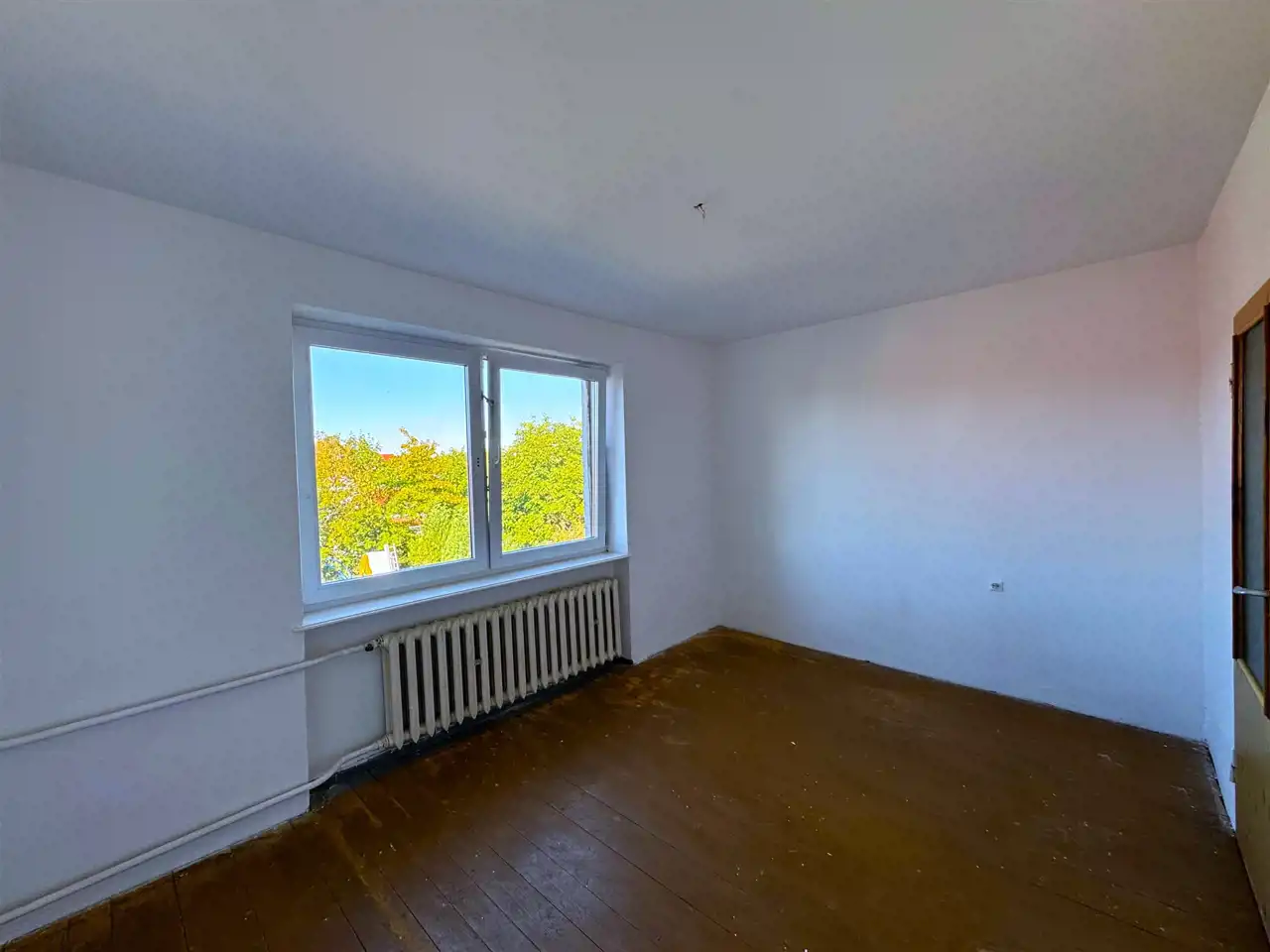 - druga część domu wymaga nakładu finansowego - aczkolwiek jest ona świetnym miejscem mogącym przynieść dochód pasywny, a składa się ona również z dwóch pięter. Na parterze znajdziemy dwa pokoje, kuchnię, łazienkę. Piętro nieruchomości składa się z dwóch pokoi oraz łazienki.