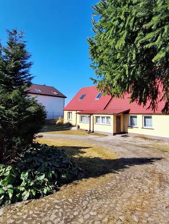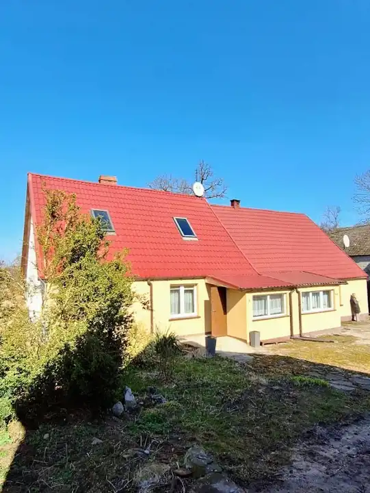 Na Sprzedaż Dom Bliźniak w spokojnej, cichej wiosce otoczonej polami i lasami. Dom o powierzchni ok. 70m2 , Dwa duże pokoje , duża kuchnia , duża łazienka , korytarz, przedsionek oraz duże poddasze. Dom bez barier architektonicznych - całość na parterze bez schodów. Dodatkowo budynki gospodarcze. Działka ok. 1650m2. Ogrzewanie piec kaflowy plus centralne na drewno.