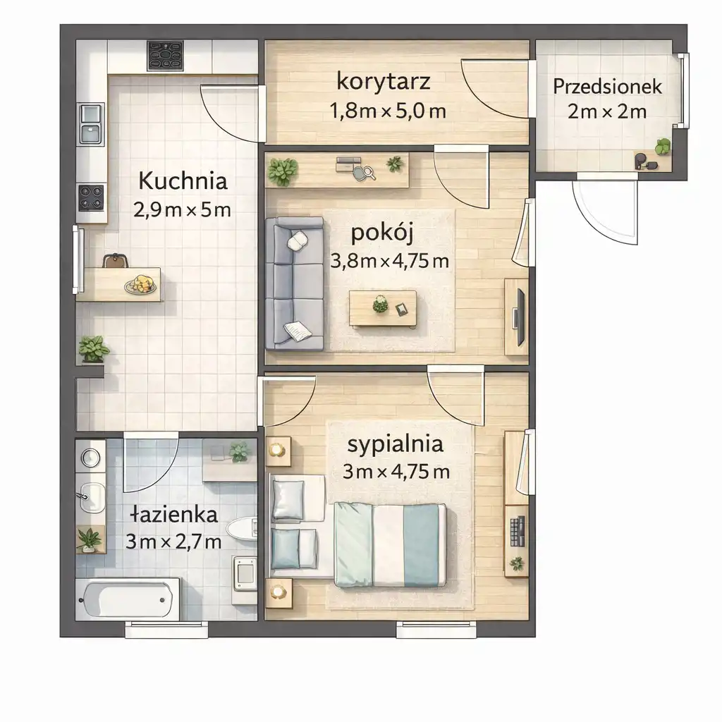 - Charakterystyka mieszkania 70 m2, 2 pokoje, do remontu