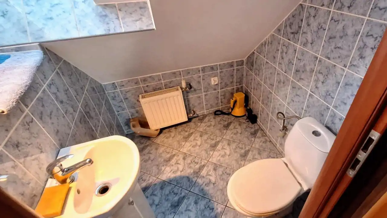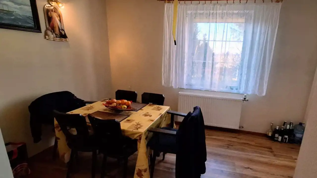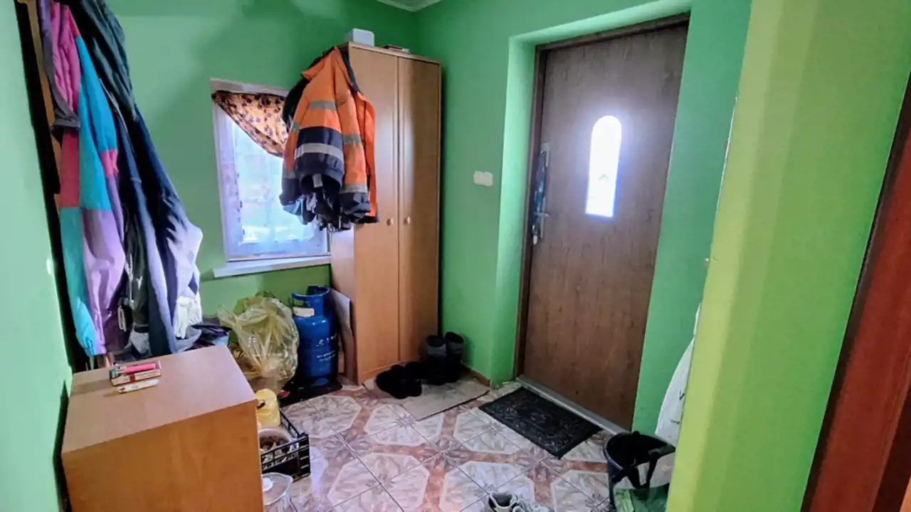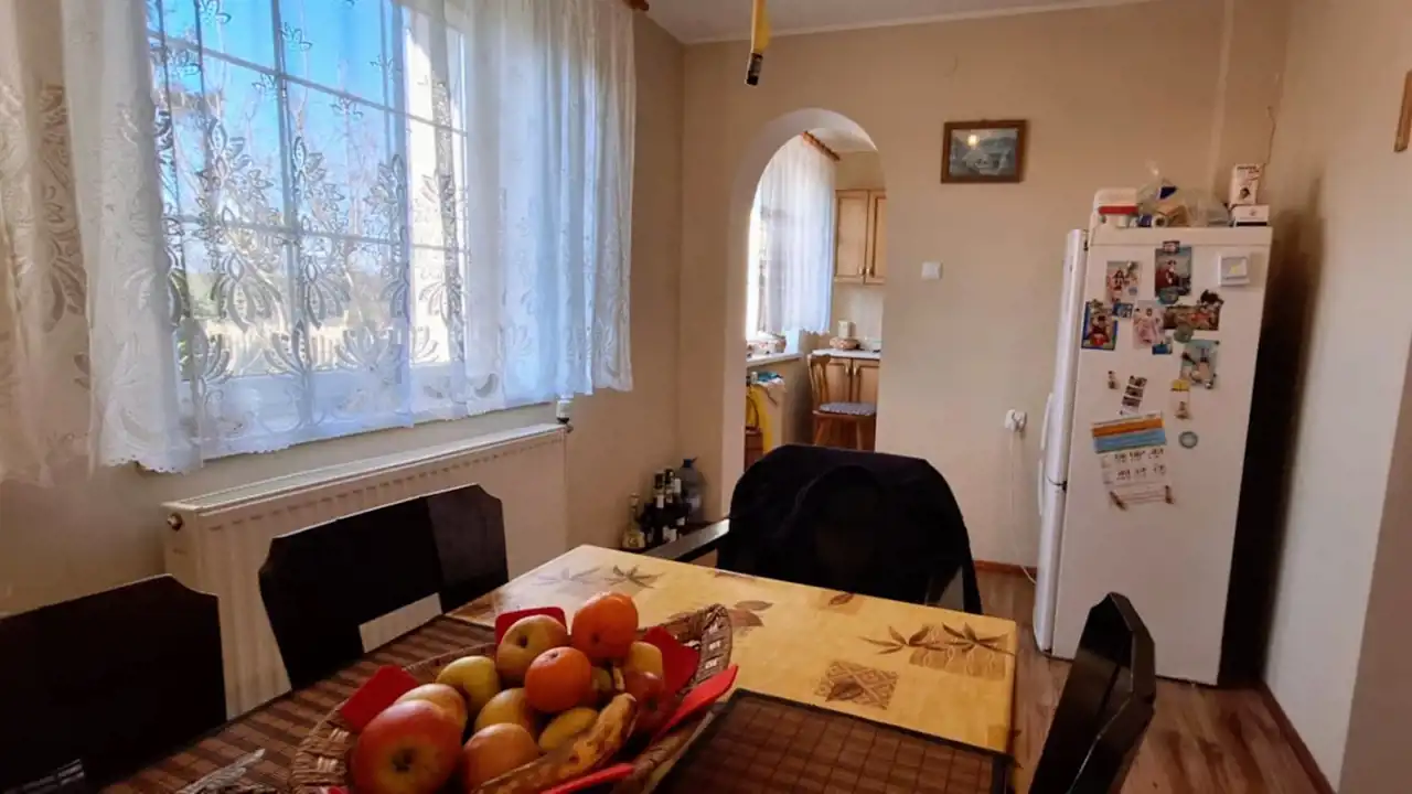 Dom o powierzchni około 60m2. Parter - Salon, Jadalnia, Kuchnia, Łazienka , Ganek. Na piętrze 3 pokoje plus WC. Wymienione wszystkie instalacje. Nowy Kocioł centralnego ogrzewania z podajnikiem w piwnicy. Na działce budynek gospodarczy. Działka około 1090m2 całkowicie ogrodzona.