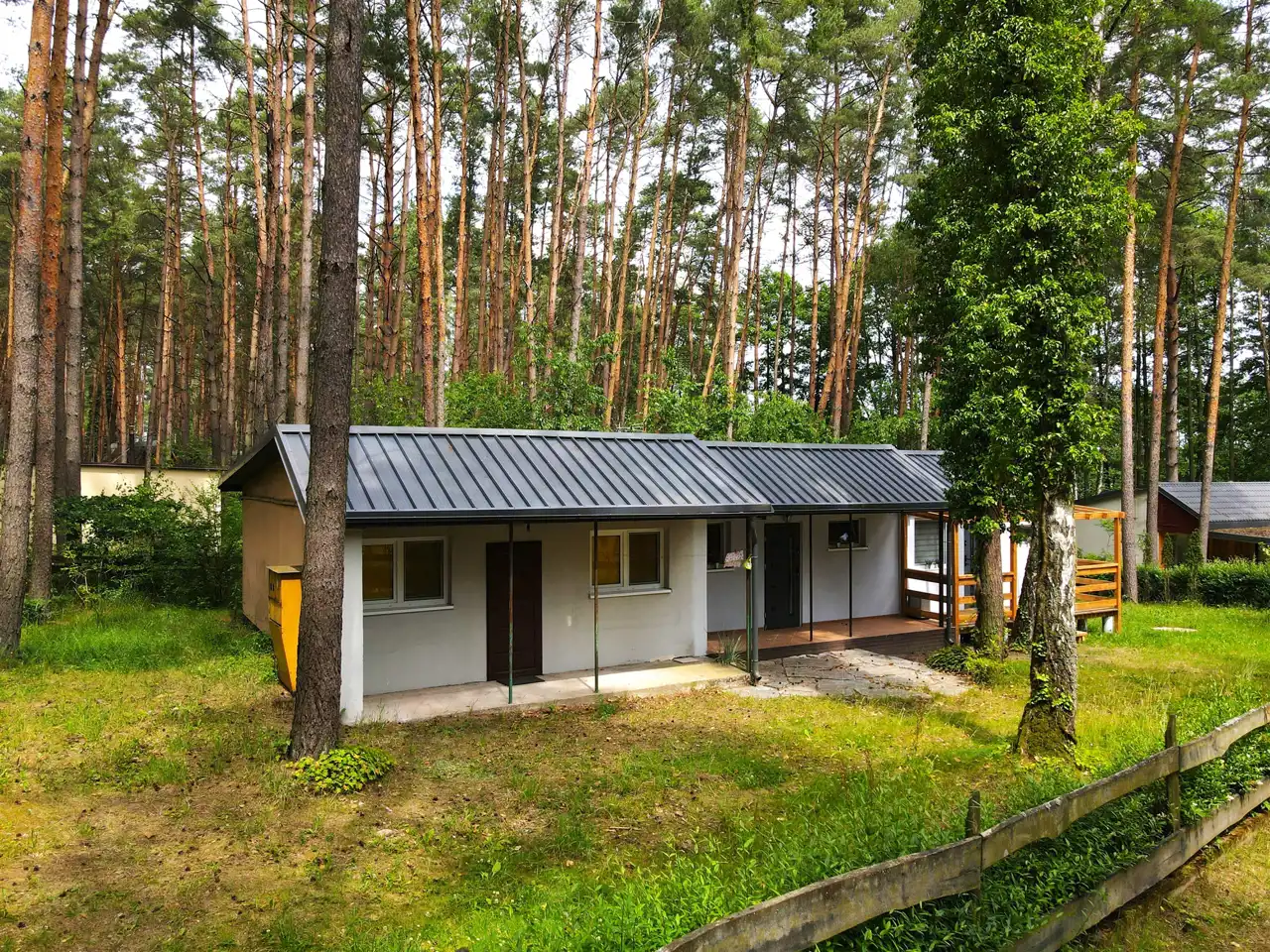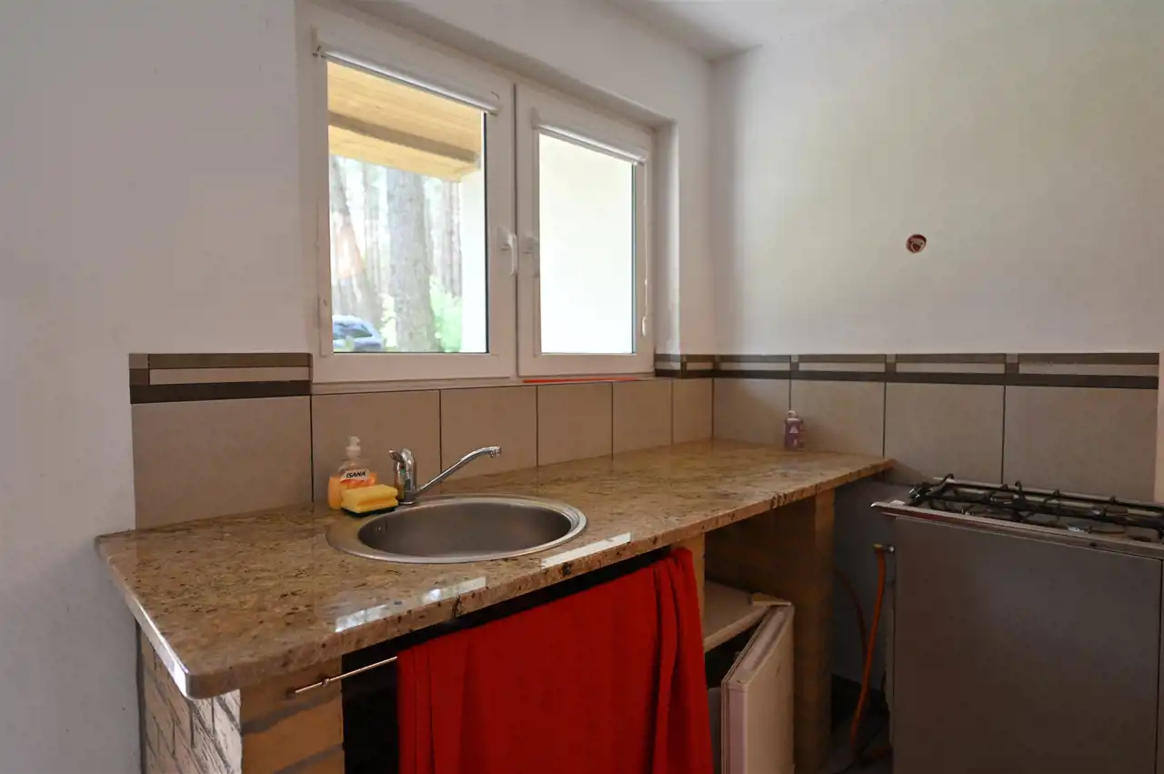 Domek znajduje się w kompleksie domków letniskowych dawnego ośrodka wypoczynkowego.