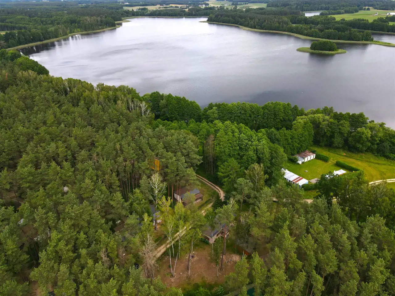 Piękne jezioro, lasy i spokojna okolice, doskonałe miejsce dla wędkarzy.