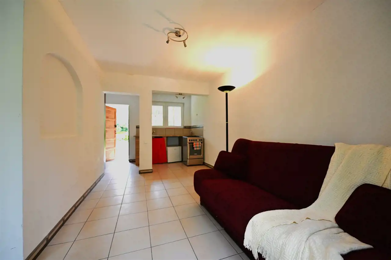 Pokój 15,12m2 , z aneksem kuchennym i wyjściem na ogródek.