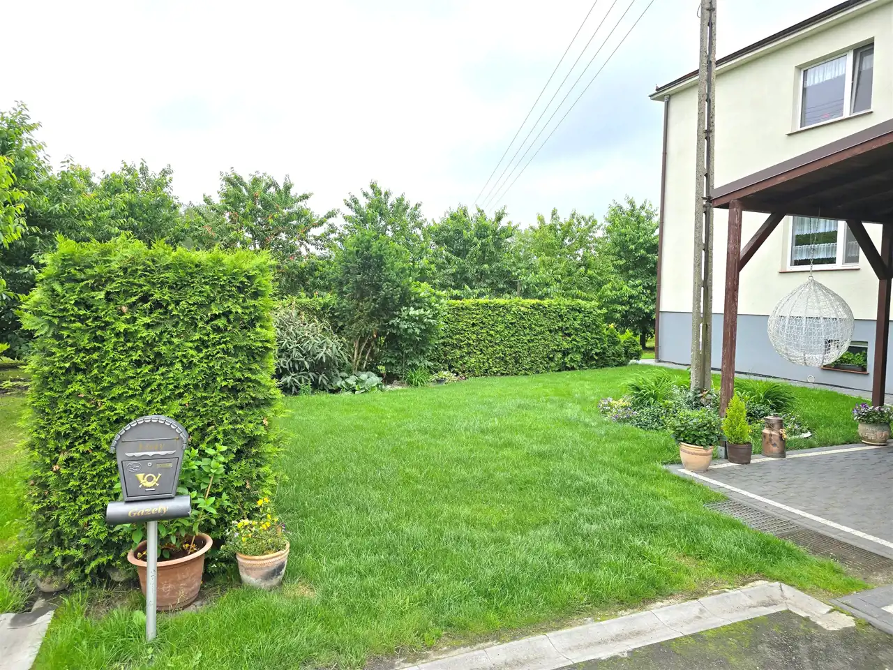 - wokół budynku mieszkalnego ogród z trawistą nawierzchnią, rabaty kwiatowe oraz nasadzenia iglaków,