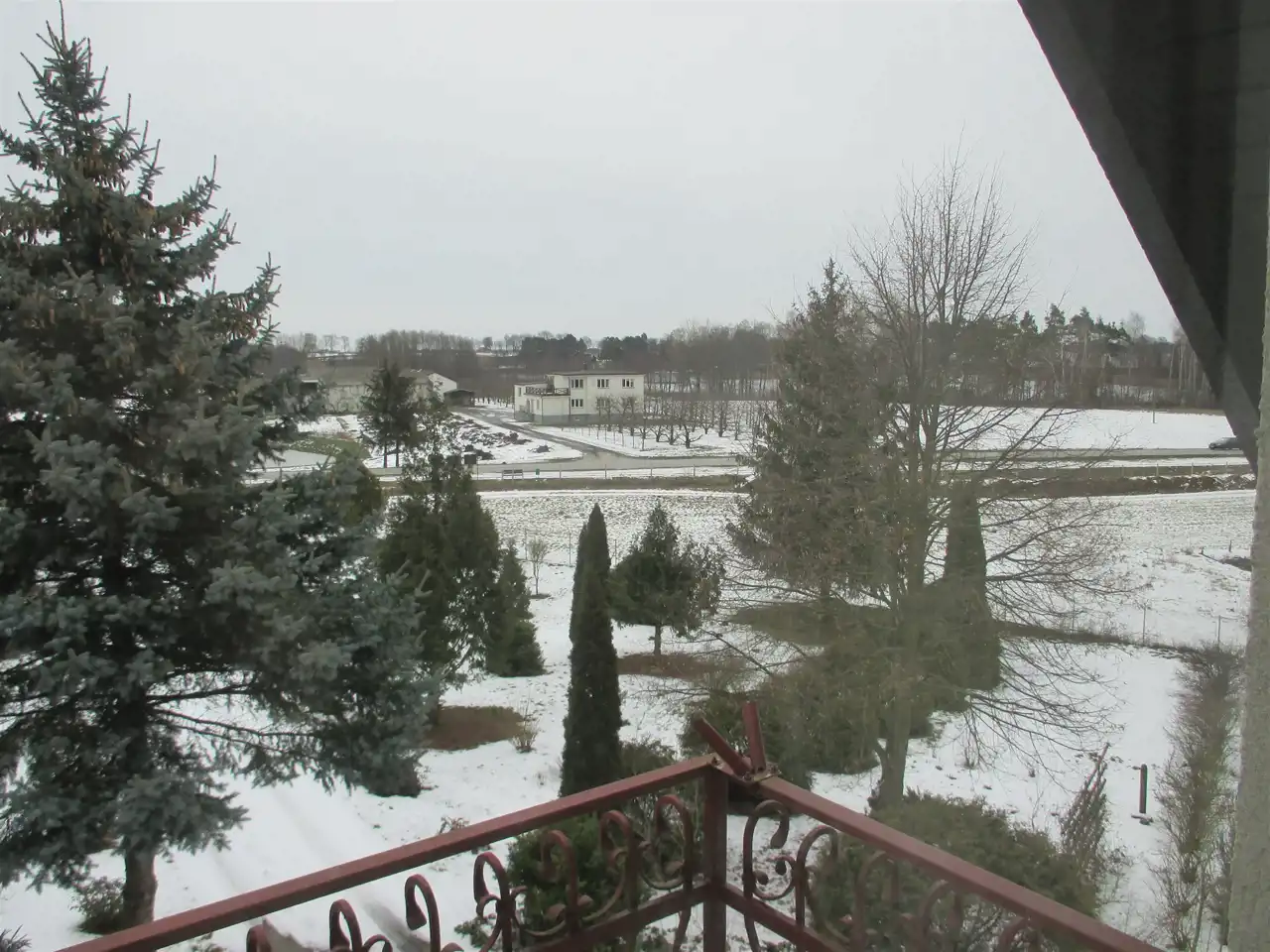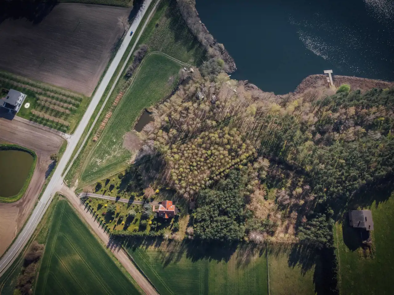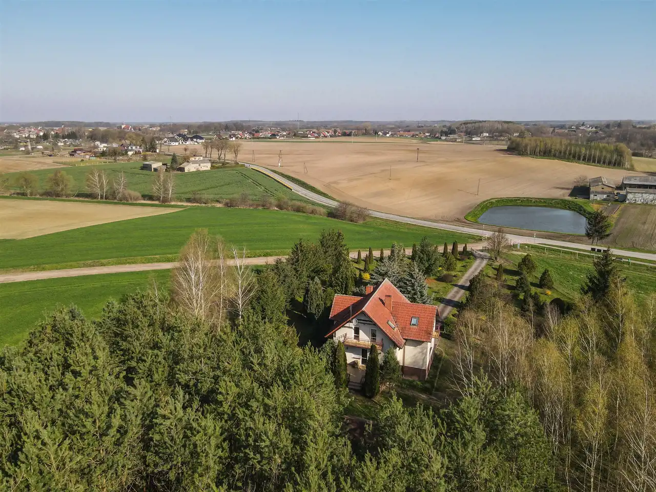 Na posesję wjeżdżamy zdalnie sterowaną bramą, pokonując długi podjazd wzdłuż którego zainstalowane jest niskie oświetlenie ogrodowe. Cała działka jest ogrodzona i w przeważającej większości porośnięta lasem w którym dominuje sosna,świerk i brzoza. Z brzóz i świerków uformowana została alejka, którą przemieszczając się w dół dochodzimy do jeziora. Zachwyt nad naturalnym pięknem tego miejsca odbiera mowę. To miejsce to raj dla koneserów naturalnego piękna w dodatku zasobnego w leszcze i liny. Ta nieruchomość jest stworzona dla ludzi ceniących sobie obcowanie z naturą a jednocześnie mogących korzystać z dóbr cywilizacji i wszelkich udogodnień. Jest to oferta skierowaną również do osób przedsiębiorczych chcących stworzyć w tym miejscu pensjonat dla ludzi starszych lub przystań agroturystyczną, możliwości jest wiele.