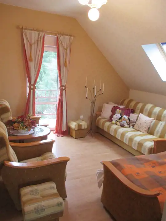 W odniesieniu do funkcjonalności domu, składa się on z przyziemia(piwnica) w której do dyspozycji kupującego jest garaż (16,96 m2) z bramą na pilota, pomieszczenie gospodarcze czyli „letnia kuchnia i dodatkowy pokój idealny na upalne dni, łazienka z wc, spiżarnia, kotłownia i skład opału. Klatką schodową przemieszczamy się na parter budynku gdzie jest do dyspozycji kuchnia z jadalnią o powierzchni 15,58 m2, salon z kominkiem i wyjściem na duży taras o metrażu 25,12 m2 oraz pokój obecnie spełniający funkcje biesiadną o metrażu 16,65 m2 a także duża łazienka posiadająca na wyposażeniu narożną wannę, kabiną prysznicową, wc, bidet i umywalkę. Na poddasze domu udajemy się dębowymi schodami, a tam do dyspozycji kupującego są cztery pokoje o powierzchniach przypodłogowych 20,41 m2, 15,37 m2, 13,06 m2 i 11,90 m2. Na uwagę zasługuje również fakt iż każdy z pokoi posiada wyjście na balkon a tym samym możliwość podziwiania widoków, oprócz tego na tej kondygnacji znajduje się łazienka o powierzchni przypodłogowej 8,41 m2 na wyposażeniu której znajduje się wanna z jacuzzi, kabina prysznicowa, wc, bidet i umywalka.
