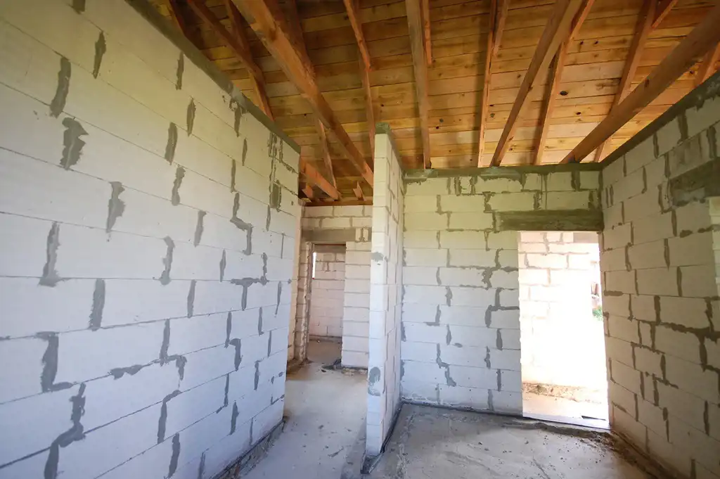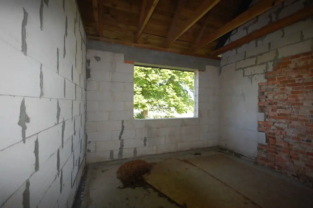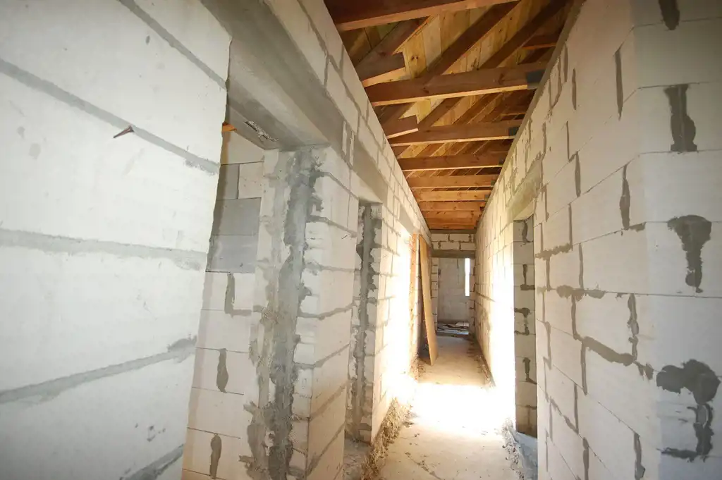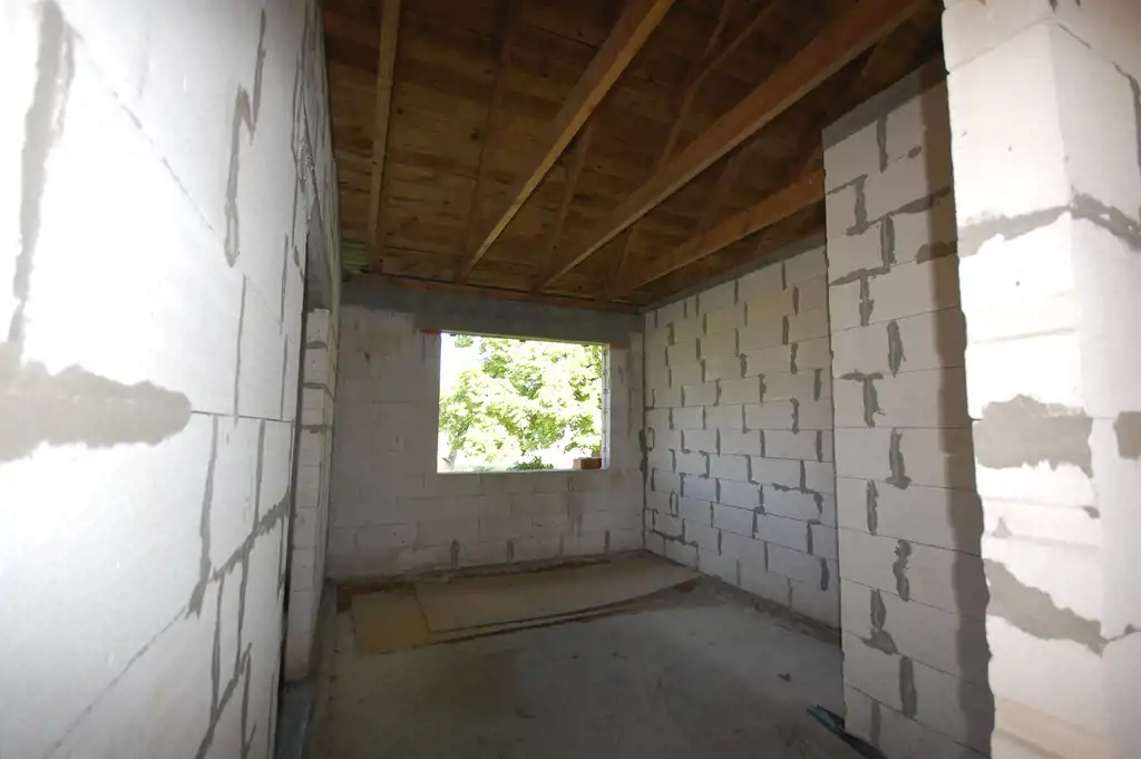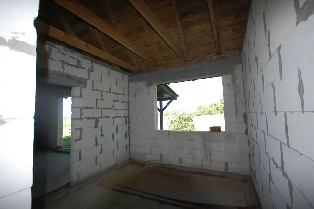 Obecnie dom jest w stanie technicznym-stan surowy otwarty.Wykonane są ściany zewnętrzne i wewnętrzne,dach odeskowany-pokryty papą,wykonane wylewki na posadzkach.